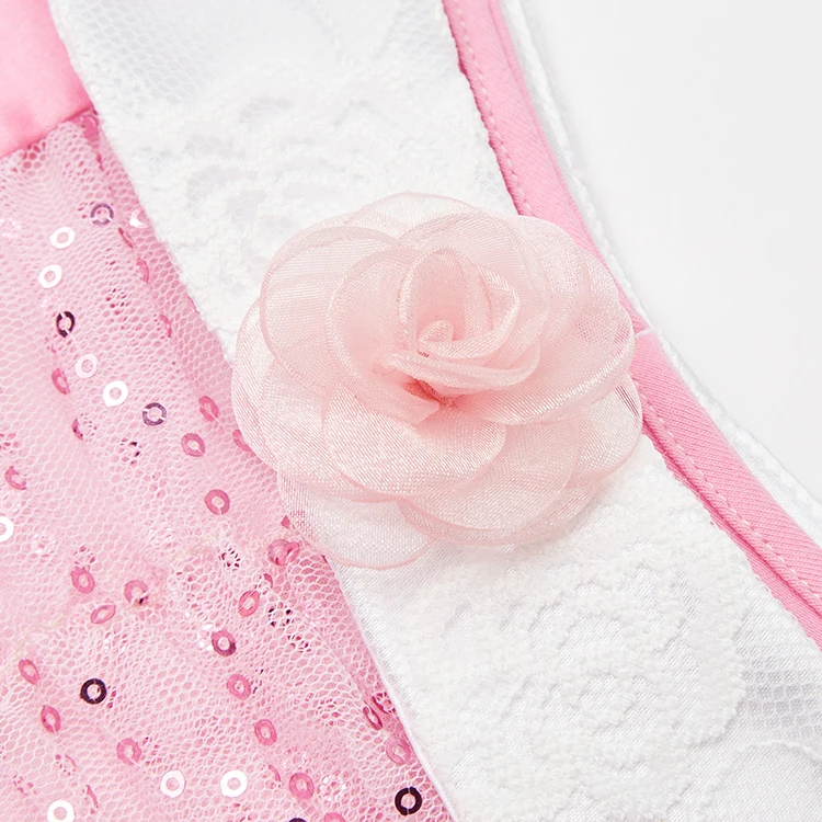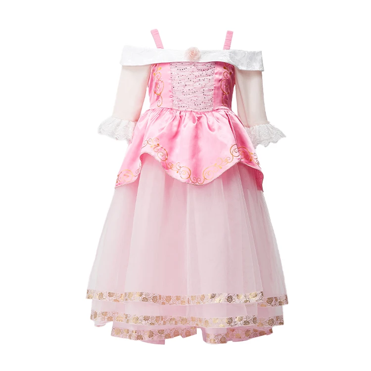 Rose Accent Sequin Fabric Off-Shoulder Design Kids Princess Costume Dress for Birthday Celebrations