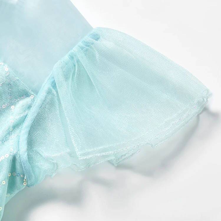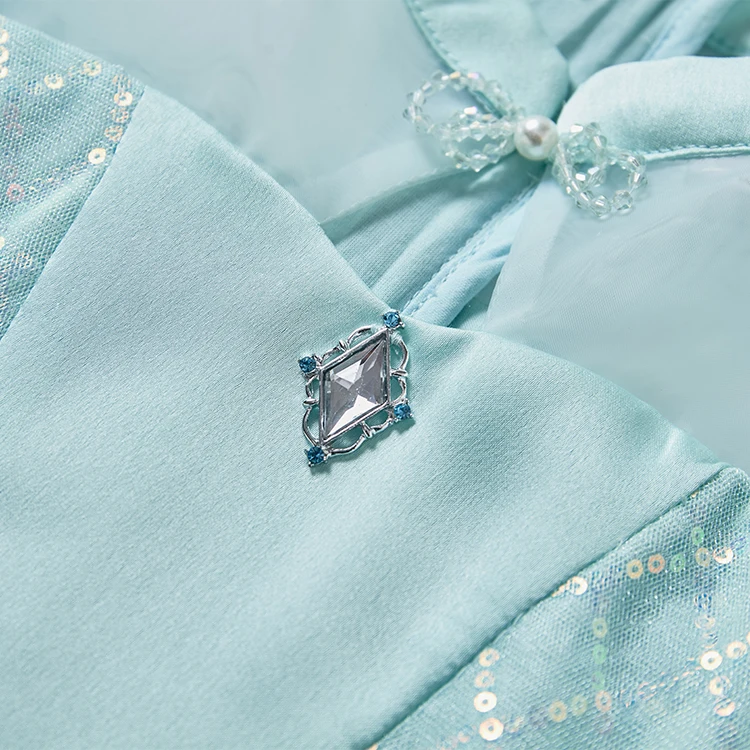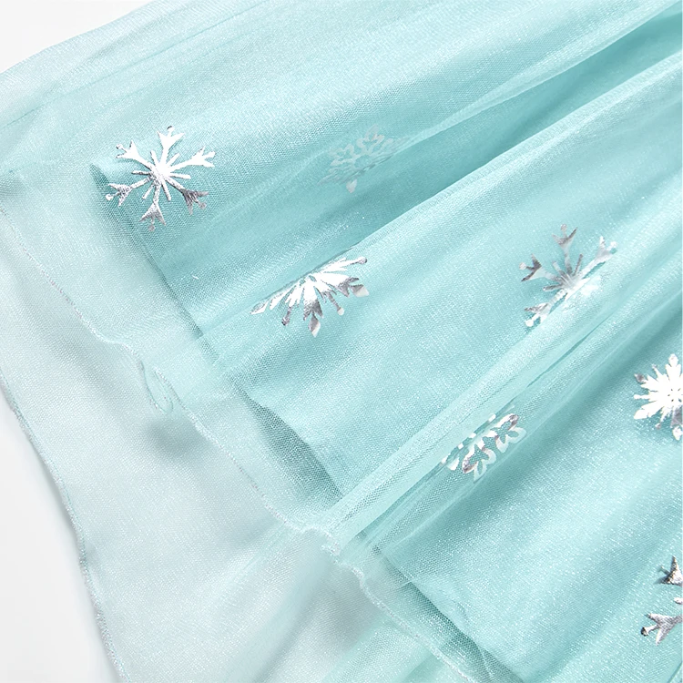 Elsa Frozen Ice Princess Children's Cotton Girls' TV Movie Costume Dress Blue Short Sleeved Flowing Shoulder Length Skirt