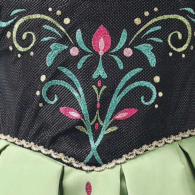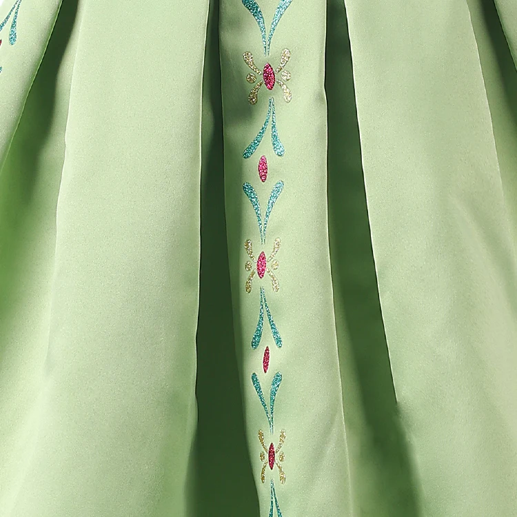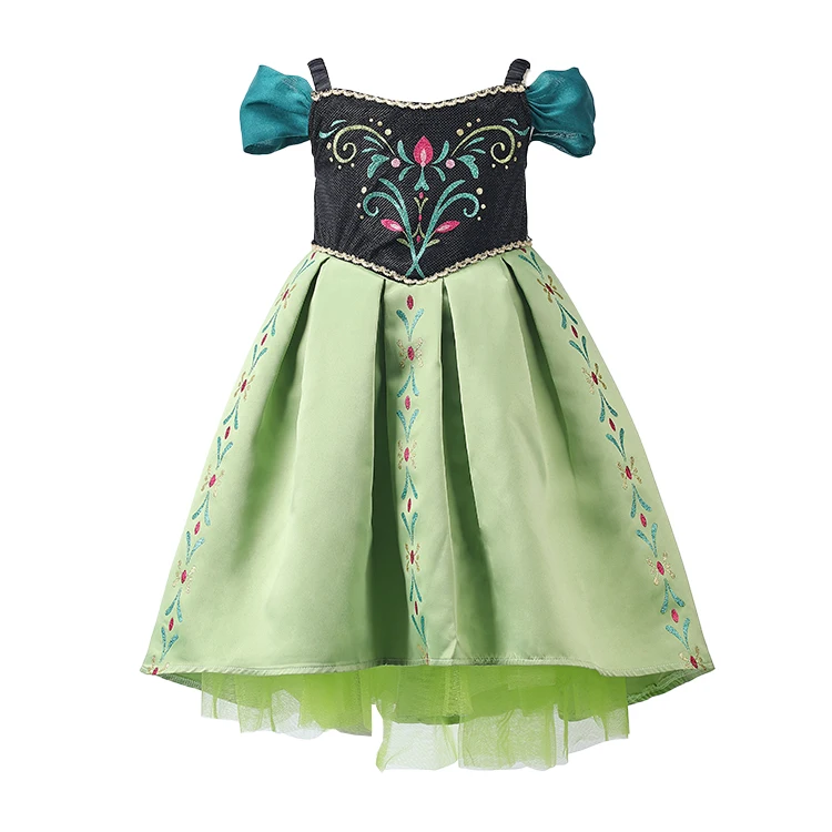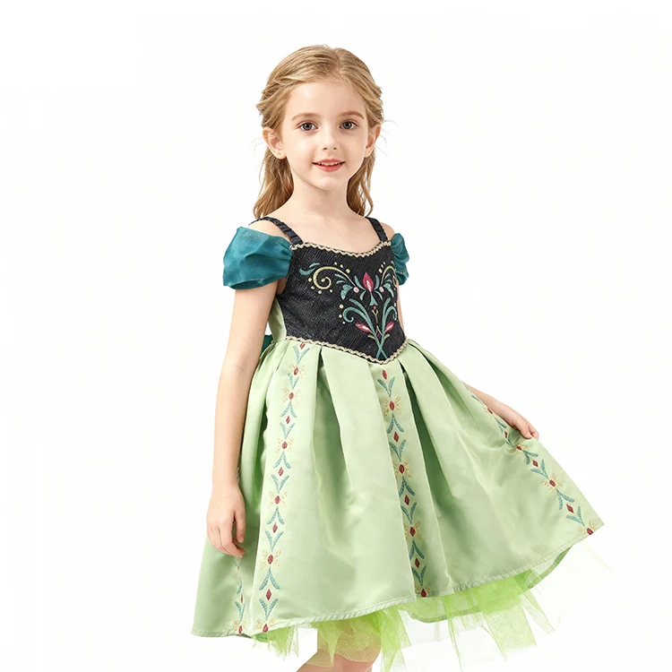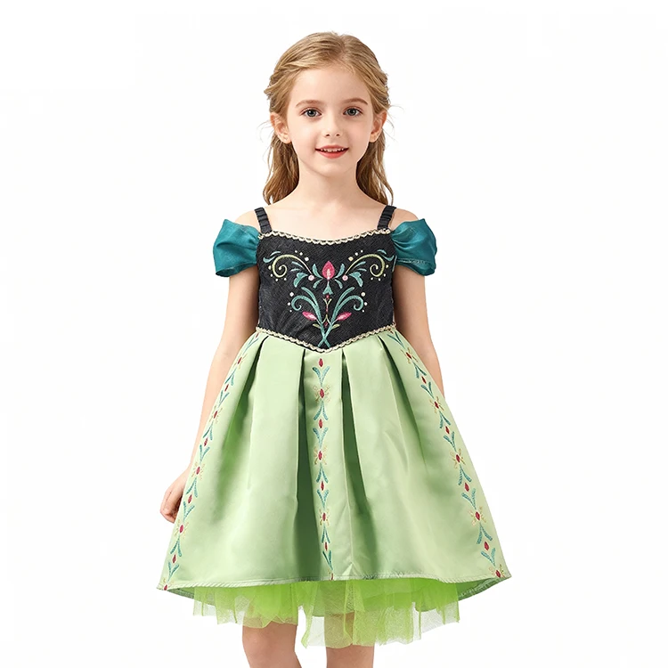 Floral Embroidery Teal Accent Off-Shoulder Design Disney Princess Dress for Children's Christmas Festival Celebrations