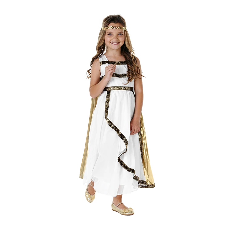 Kids Greek Goddess Costume Set with Gold Trim & Classic Design for Stage Performance Mythology Role Play Comfortable Breathable