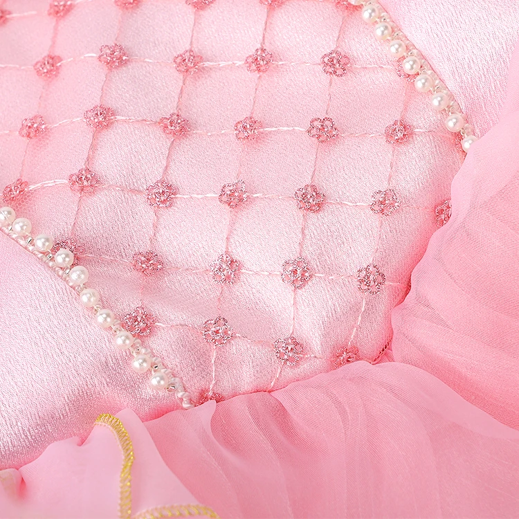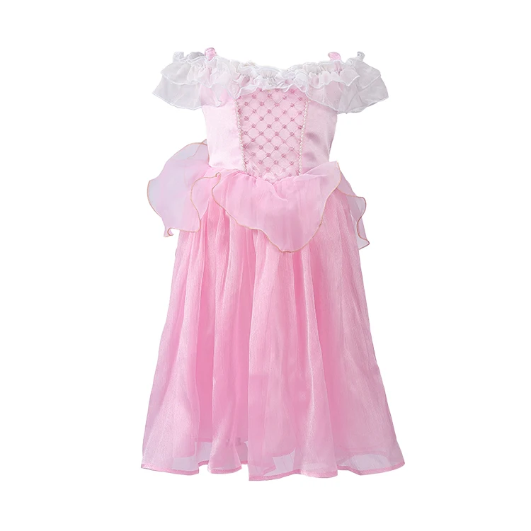Pearl Accent Grid Pattern Off-Shoulder Design Girls Christmas Princess Costume Dress for Kids Party Celebrations