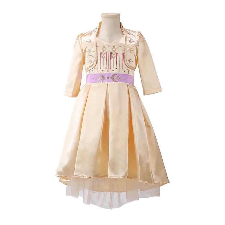 Embroidered Detail Satin Fabric Girls' Princess Traditional Dress for Christmas Festivals Customizable