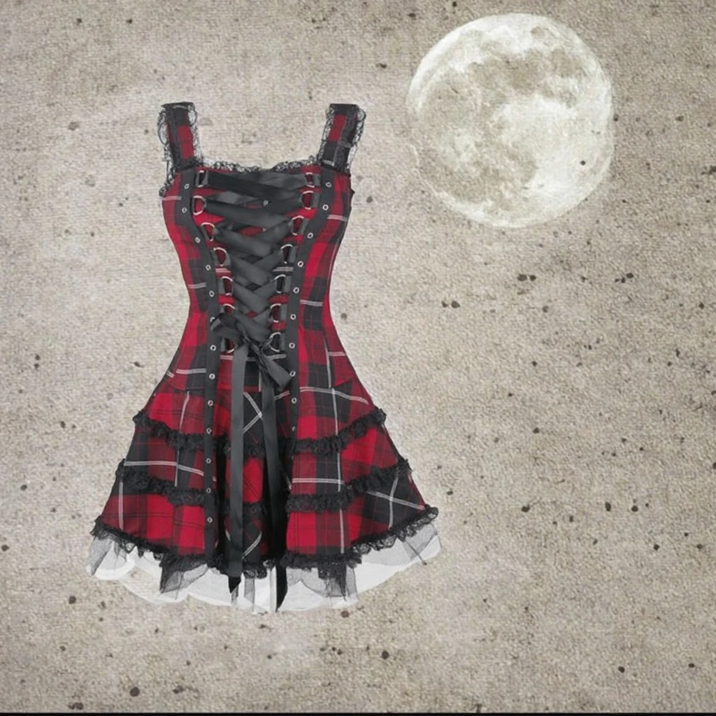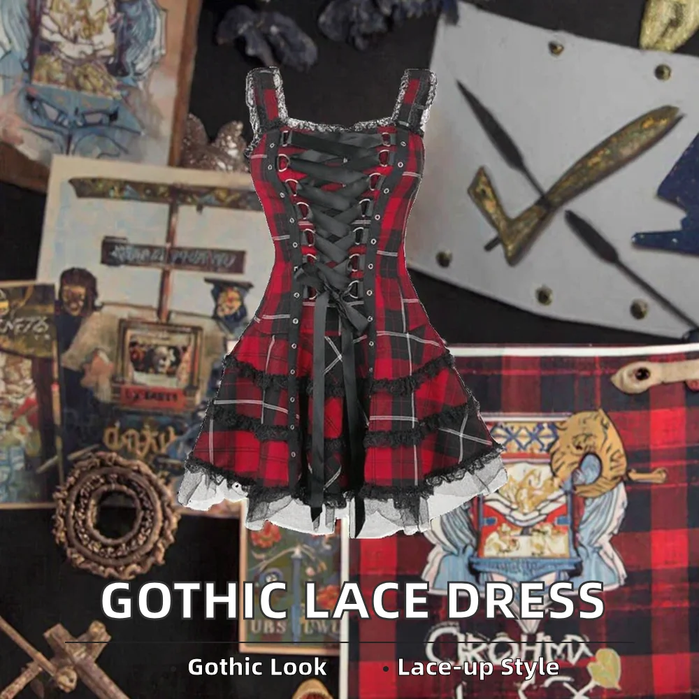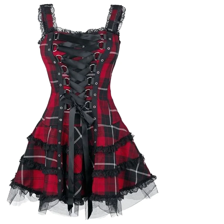 Ecowalson Halloween New Year Gothic Style Women's Sleeveless Cross Lace Dress Slim Waist Short TV Movie Children Cosplay Costume