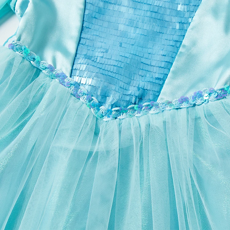 Girls Frozen Elsa Princess Costume Turquoise Tulle Gown Long Sleeve Snowflake Detail Customized Color Polyester for Winter Theme