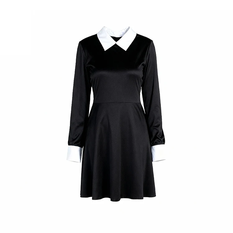 Curated Children Wednesday Addams Outfit Long Sleeve Classic Style Perfect Dress for Stage Performance Custom Color Polyester
