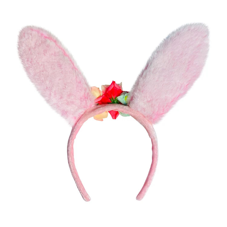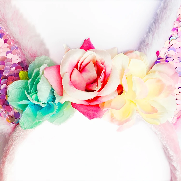 Girls Sparkly Bunny Ear Hair Hoop Colorful Flowers Sequin Detail Medieval Style Polyester Children Hair Accessory Halloween