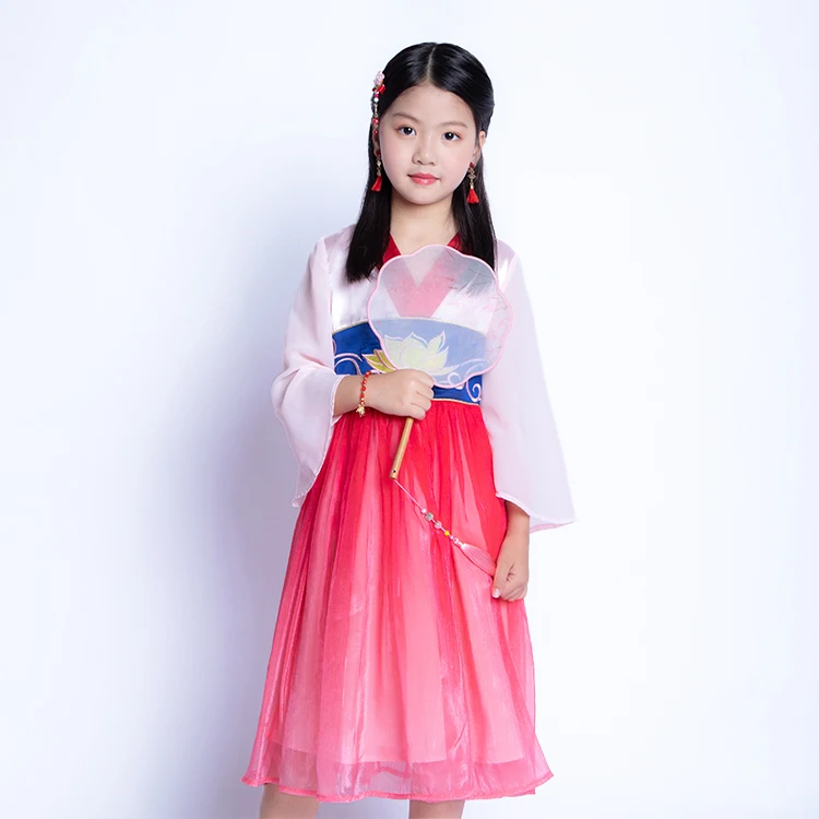 Lotus Embroidery Princess Fabric Contrast Trim Girls Hanfu Hua Mulan Christmas Dress for Children's Cultural Celebrations
