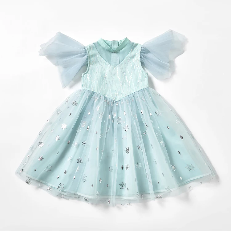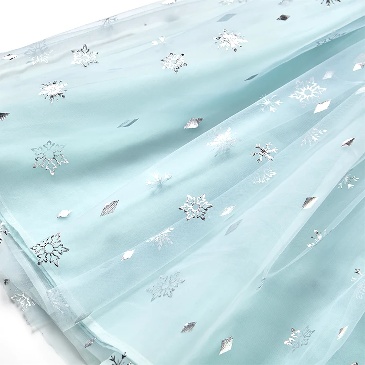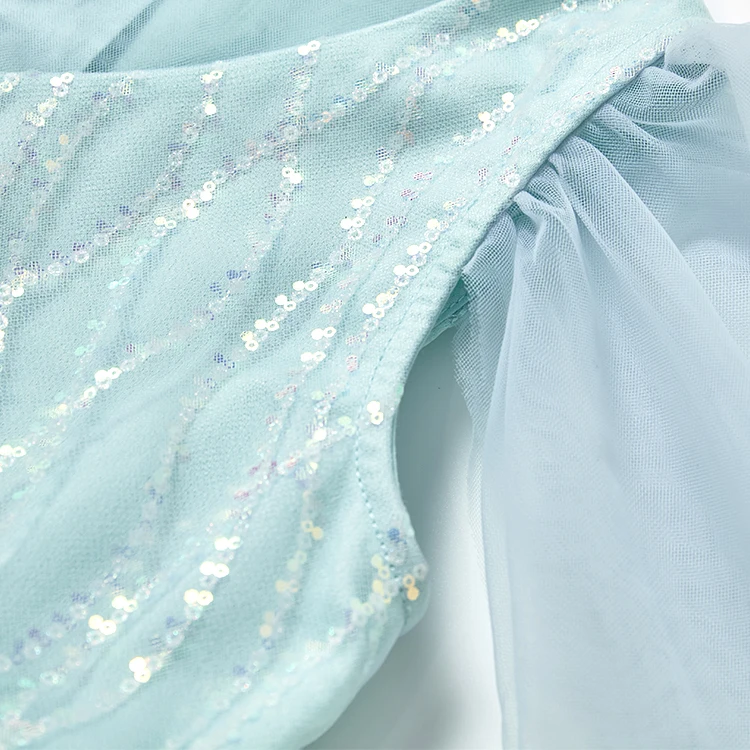 Snowflake Sequin Detail Light Blue Tulle Dress Kids Costume for Stage Performance Comfortable Breathable Winter Gatherings