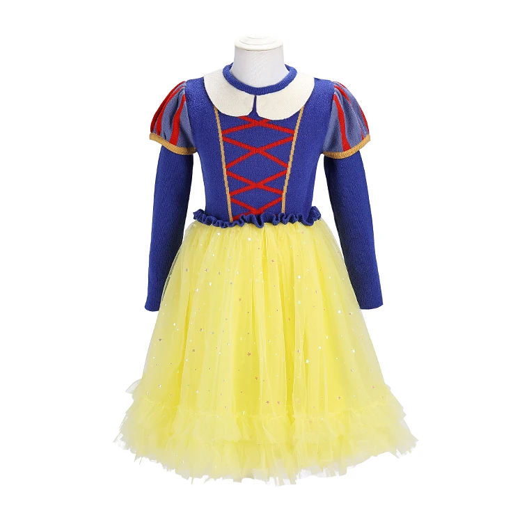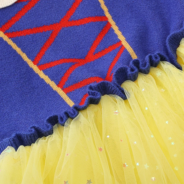 OEM/ODM Disney Princess Christmas Customized Color Knit Fabric Lace-Up Detail Red Bow Accessory Kids Dress for Costume Parties