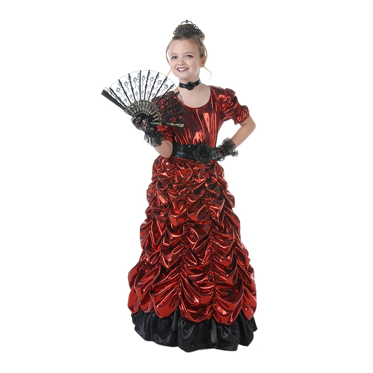 Hot Seller Children Girls Flamenco Dance Costume Ruffled Design Stage Polyester Comfortable Breathable High Quality Costume Set