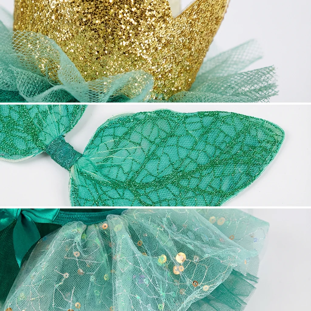 3-Piece Forest Green Sparkle Fairy Jungle Spirit Ballroom Costume Set with Wings Tutu & Wand 100% Polyester