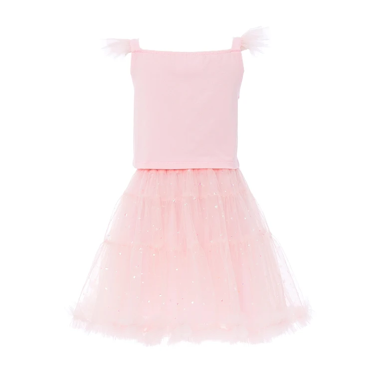 Girls Summer Apparel Set Customizable Cute Top and Skirt 3D Embroidery Fashion Outfit for Kids OEM