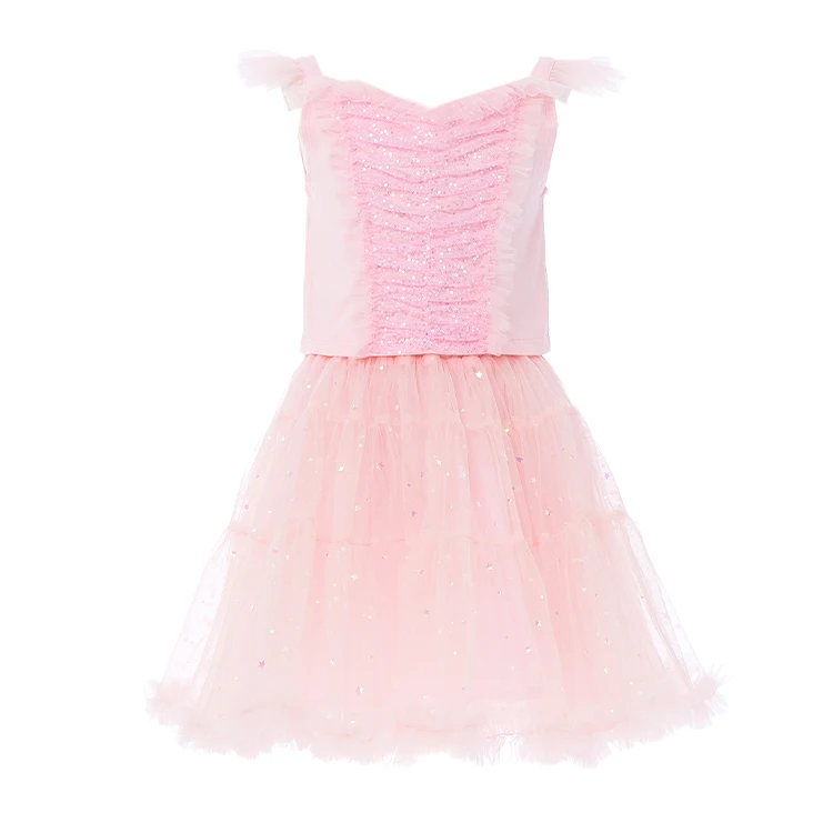 Girls' Princess Bubble Sleeve Chiffon Short Dress New Cute Thin-Strap Top Children's Fluffy Ballet Skirt Christmas TV Movie