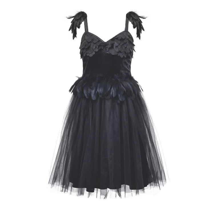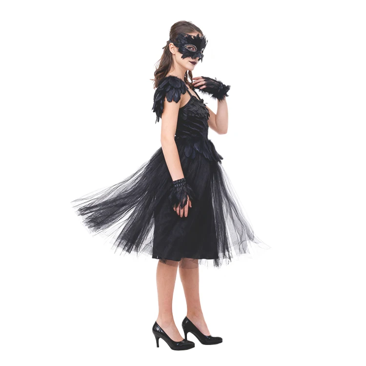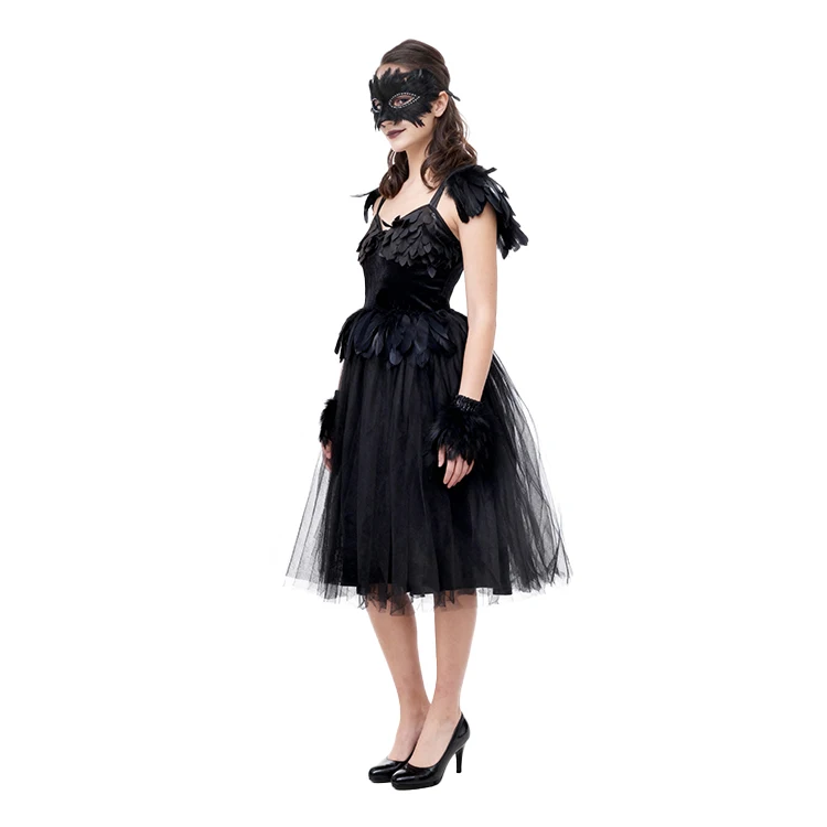 Black Swan Costume Feather Detail Tulle Skirt Mask Accessory Dress for Stage Performance Masquerade Parties