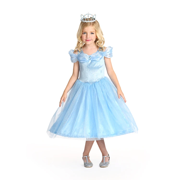 Girls Children Princess Dress Crown Sparkling Blue Tulle Costume for Dress-up Party Cosplay Stage Performance Comfortable Soft