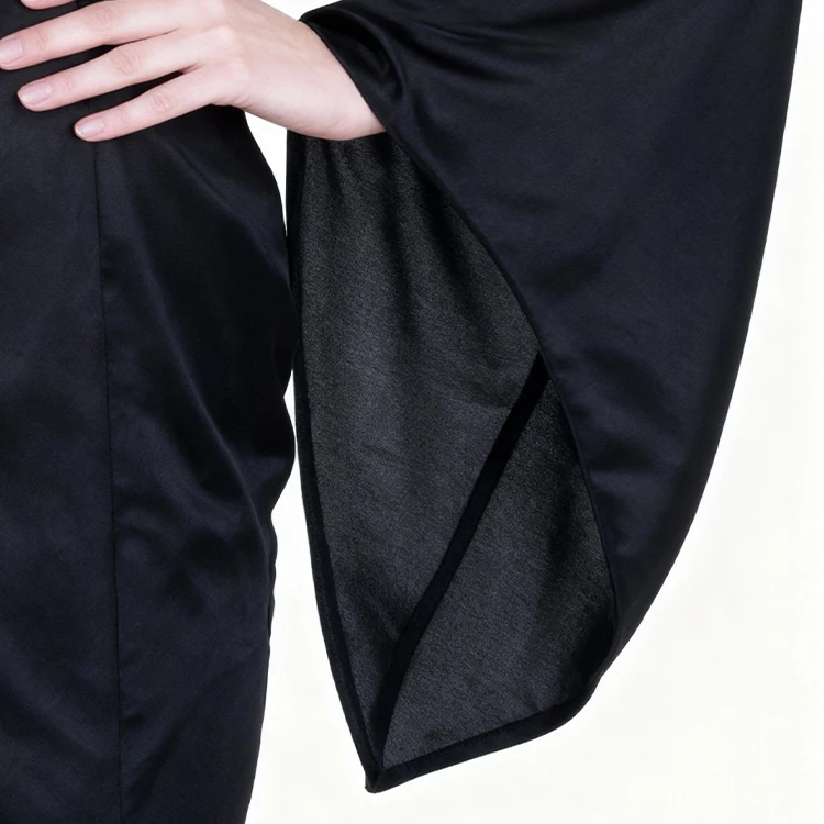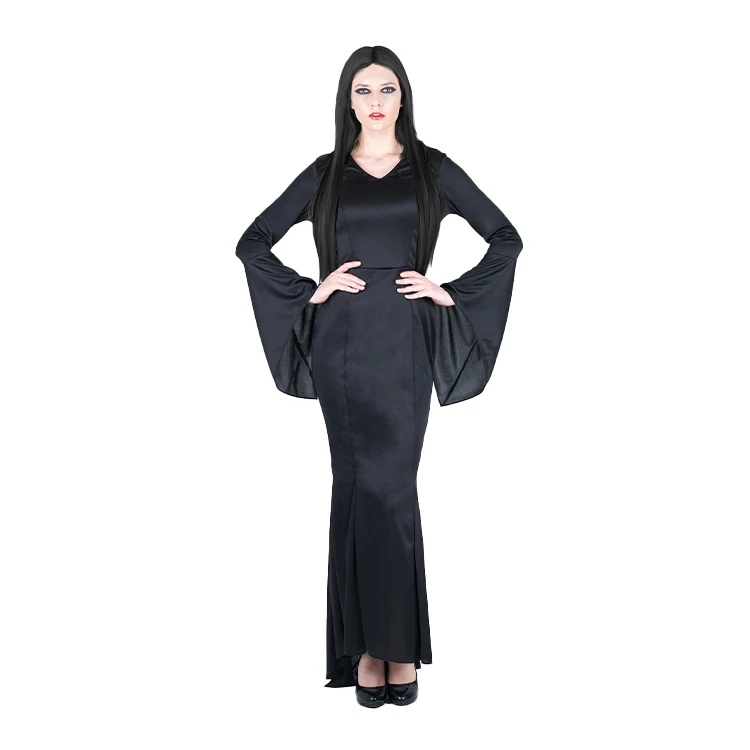 Dream Party Women Adult Morticia Costume Black Satin Gown Bell Sleeve Long Hem Comfortable Breathable High Quality Performance