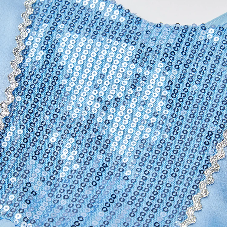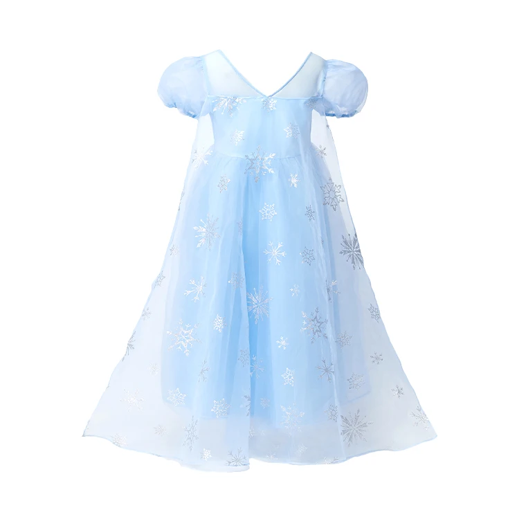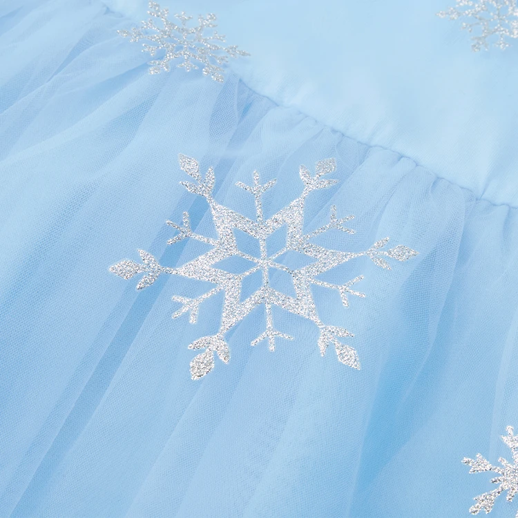Girls Ice Princess Elsa Costume Light Blue Tulle Gown Puff Sleeve Snowflake Detail Tiara Accessory for Frozen Theme Parties