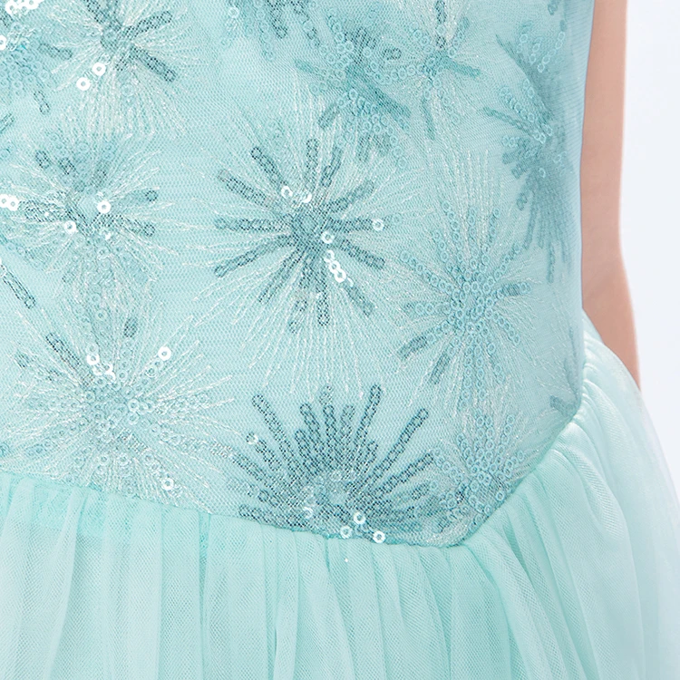 Snowflake Sequin Detail Tulle Fabric Princess Dress for Girls Christmas Party-Customizable Color & Size