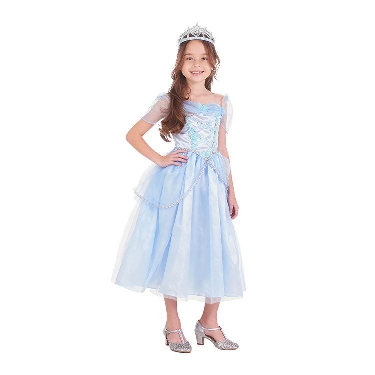 Girls Children Costume Satin Gown Sequin Detail Tiara Comfortable Breathable Custom Color for Stage Performance Fairy Tale