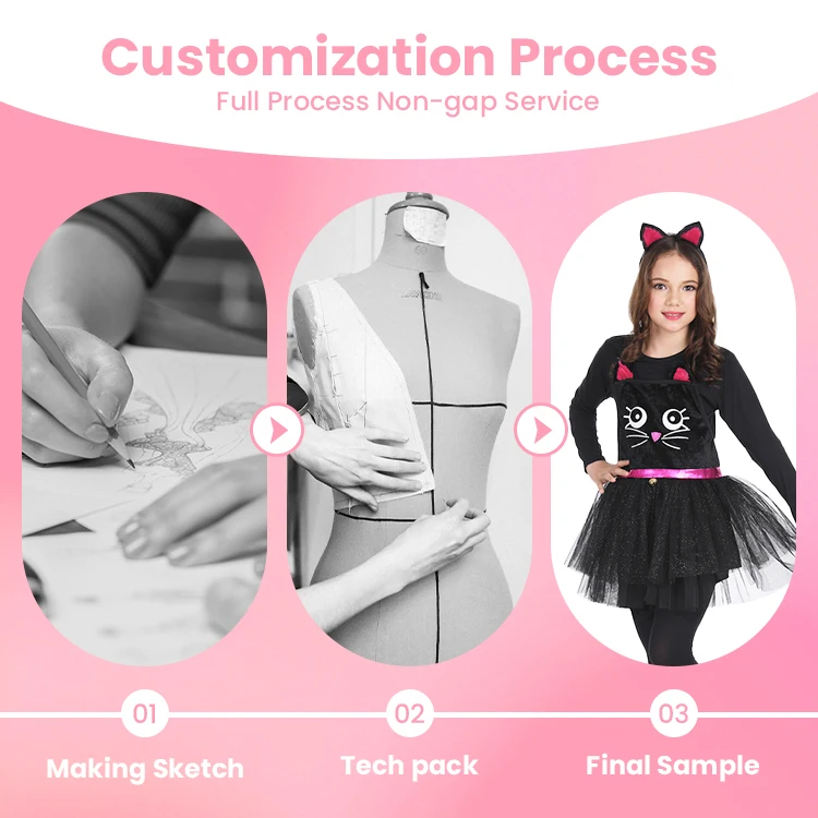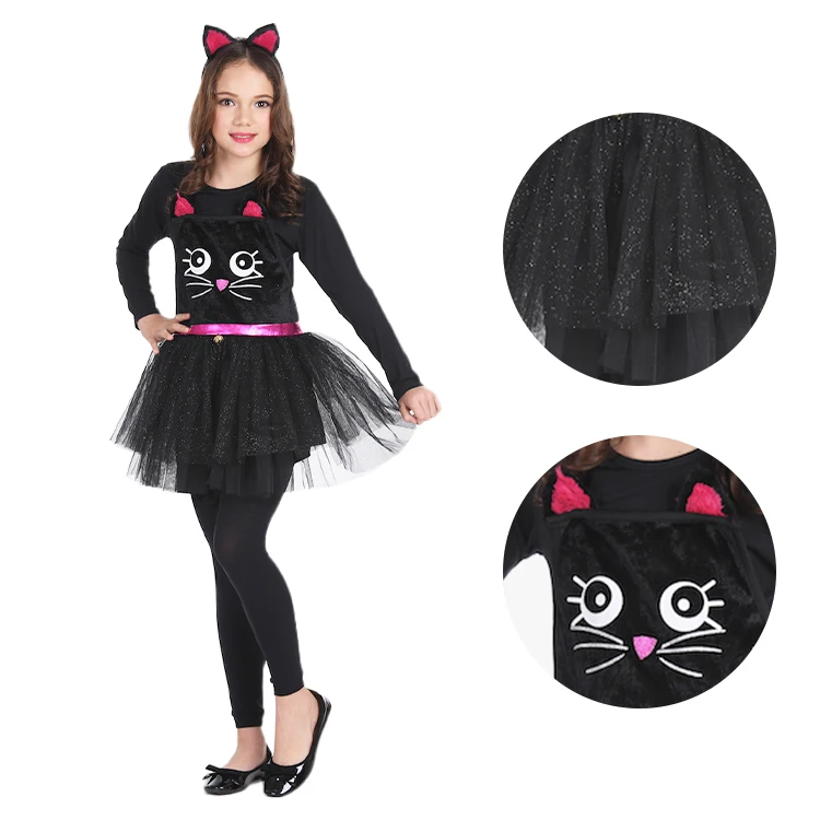 Black Cat Costume Long-Sleeve Tulle Dress with Ears for Stage Performance Adults 100% Polyester