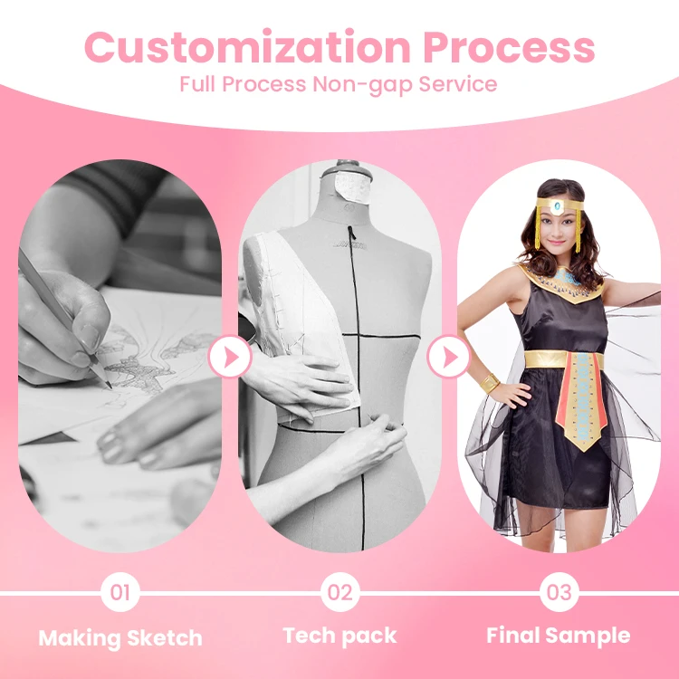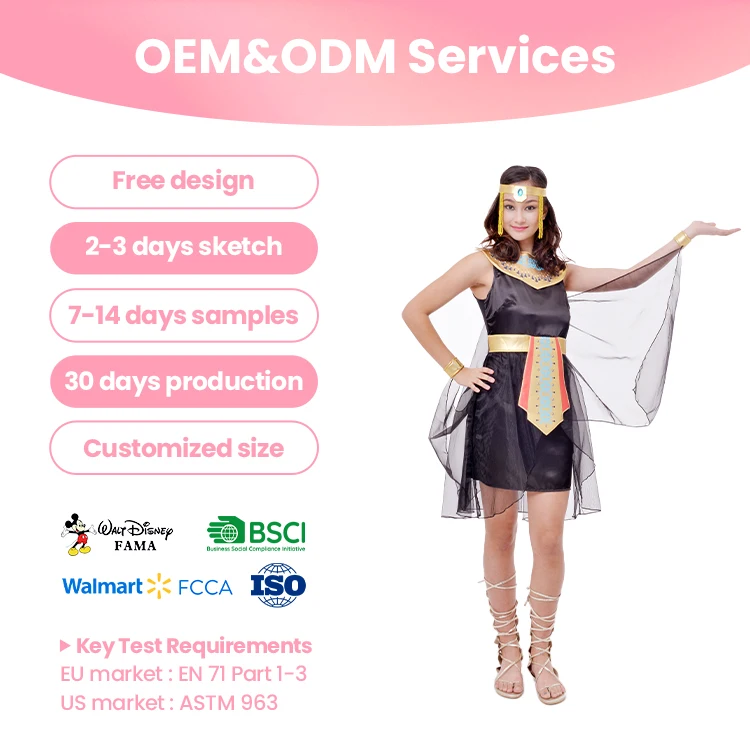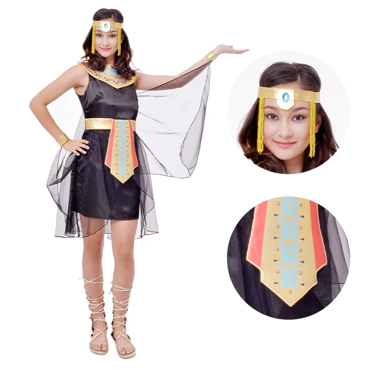 Custom Design OEM Service FAMA Certified Women's Egyptian Pharaoh Costume Black Gold Dress