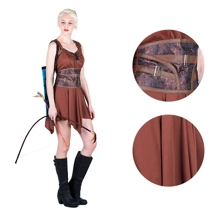 Adult Huntress Costume Brown Dress with Bow and Arrow Set for Cosplay Parties