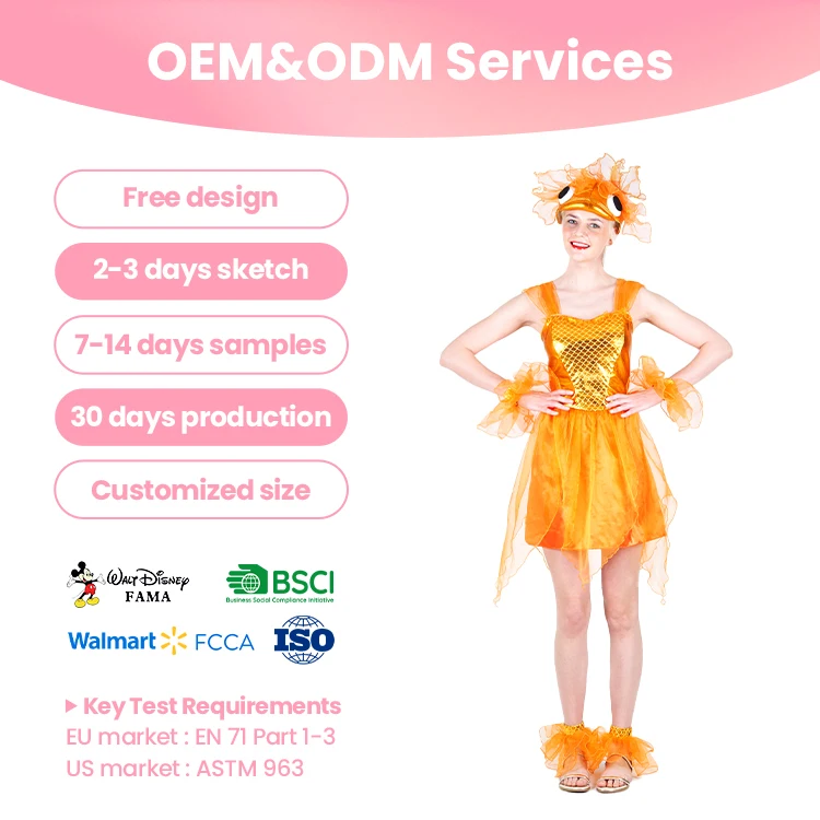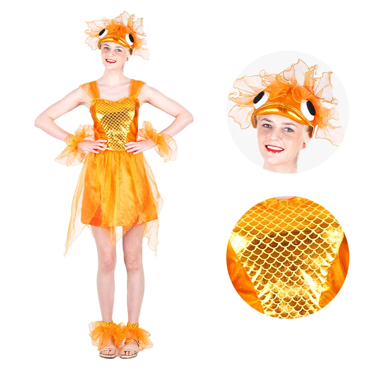 Orange Tulle Dress Adult Animal Goldfish Costume with Fish Headpiece for Cosplay Parties Festival Events