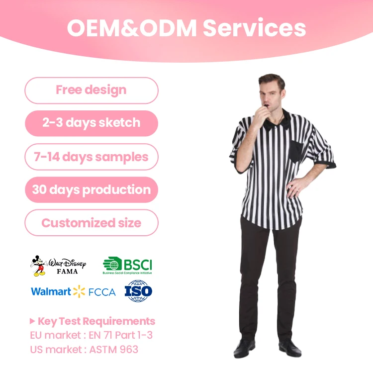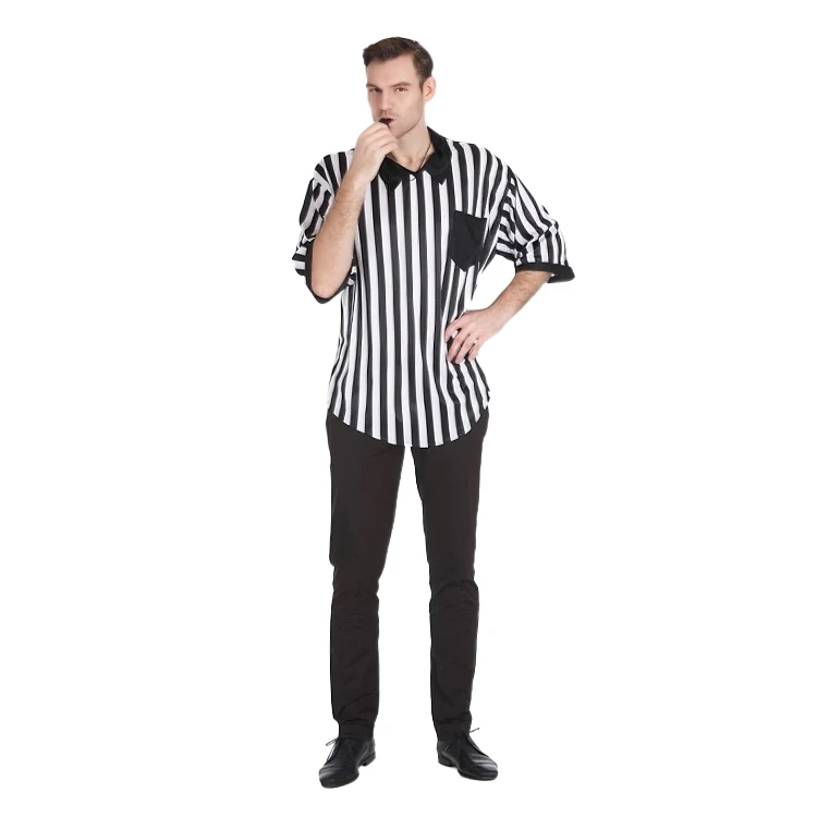 Black White Striped Referee Shirt and Pants Adult Referee Costume for Halloween Cosplay Parties