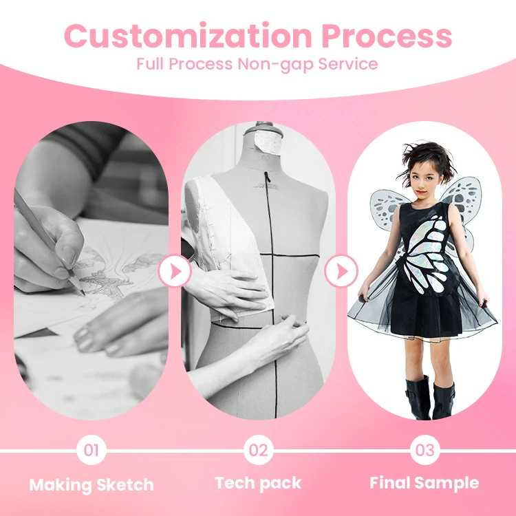 OEM Service Custom Black Butterfly Tulle Dress Fairy Outfit for EU US Market Theme Gatherings
