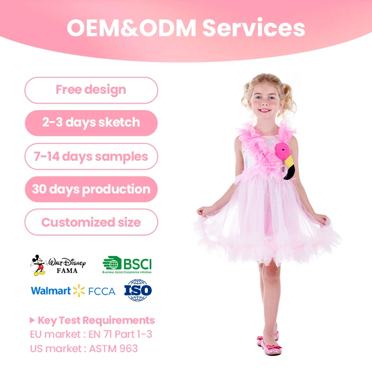 EU EN71 CertifiedPink Tulle Dress Flamingo Costume with Plush Bird Detail for Party Holiday Supply