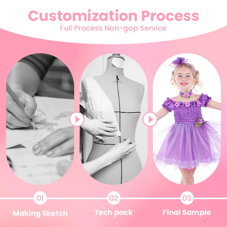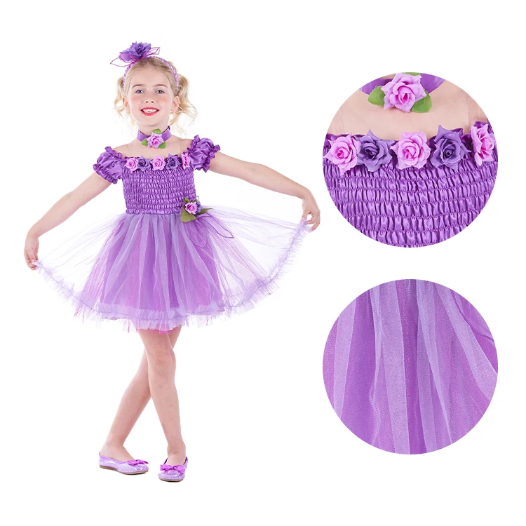 OEM Service Custom Princess Outfit Purple Rose Tulle Dress Costume for Birthday Party Theme Gatherings