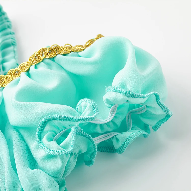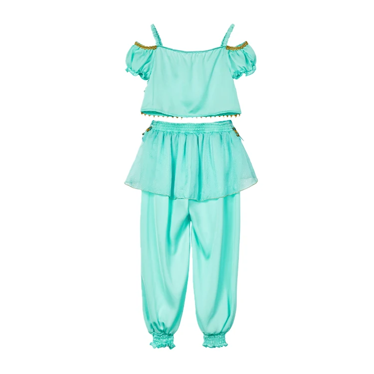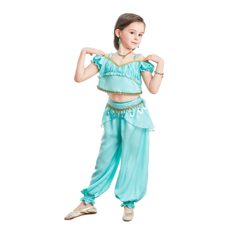Green Jade Children's Anime Costumes Top Belly Dance Dress Girls Arabian Princess Jasmine Look Cut-Out Design Jewelry Polyester