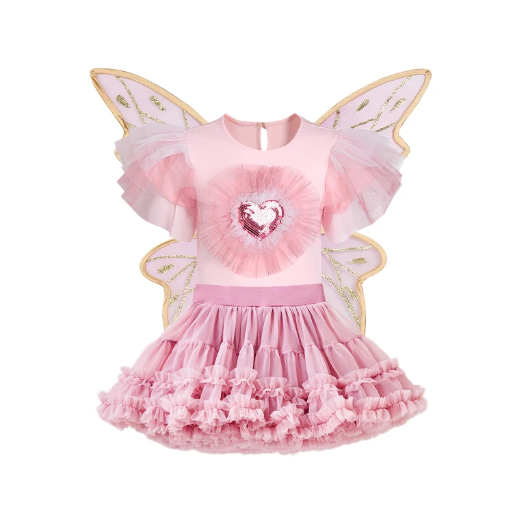 Sweet Girls' Elastic Waist Lace Tulle Princess Mini Dress with Knee-Length Petticoat Layered Puff Skirt Anime Cosplay Sets