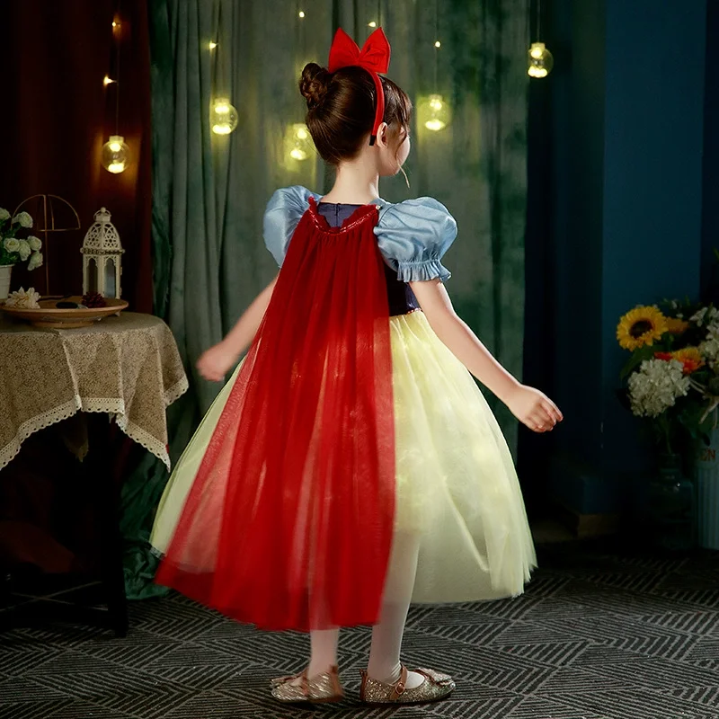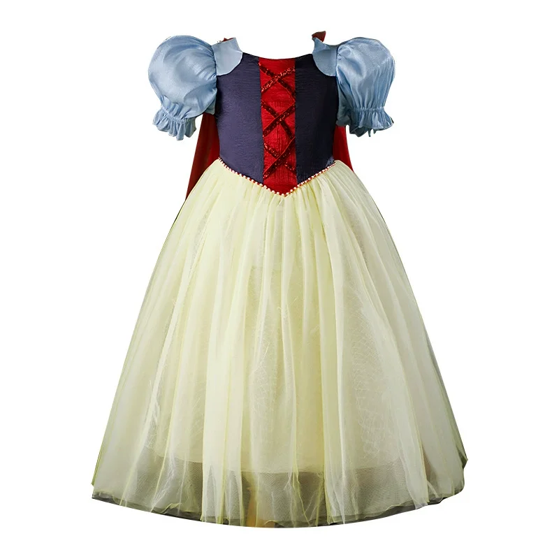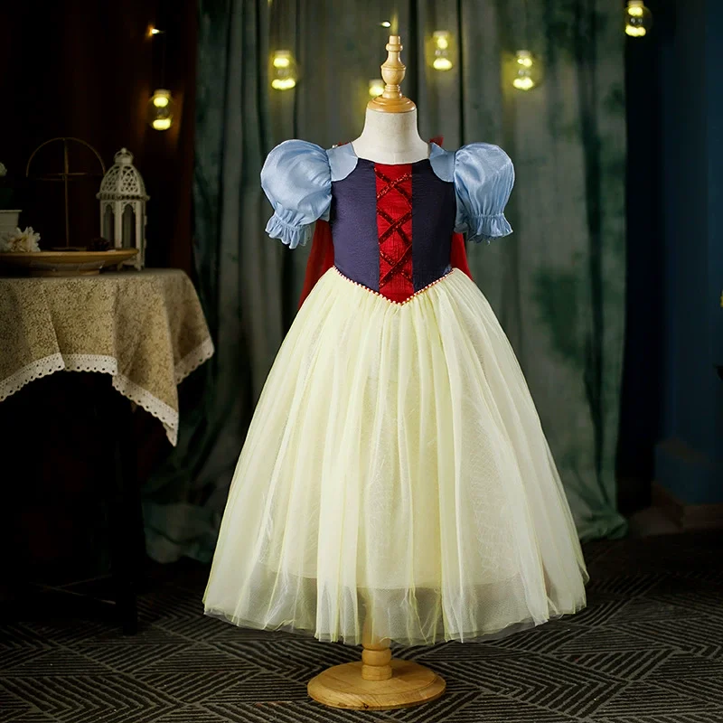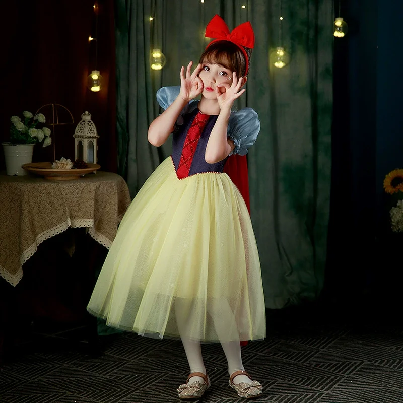 Summer Party Kids Costume Snow White Princess Dress Yellow Tulle Puff Sleeve Decoration Stage Performance Girls Dress