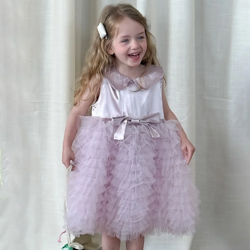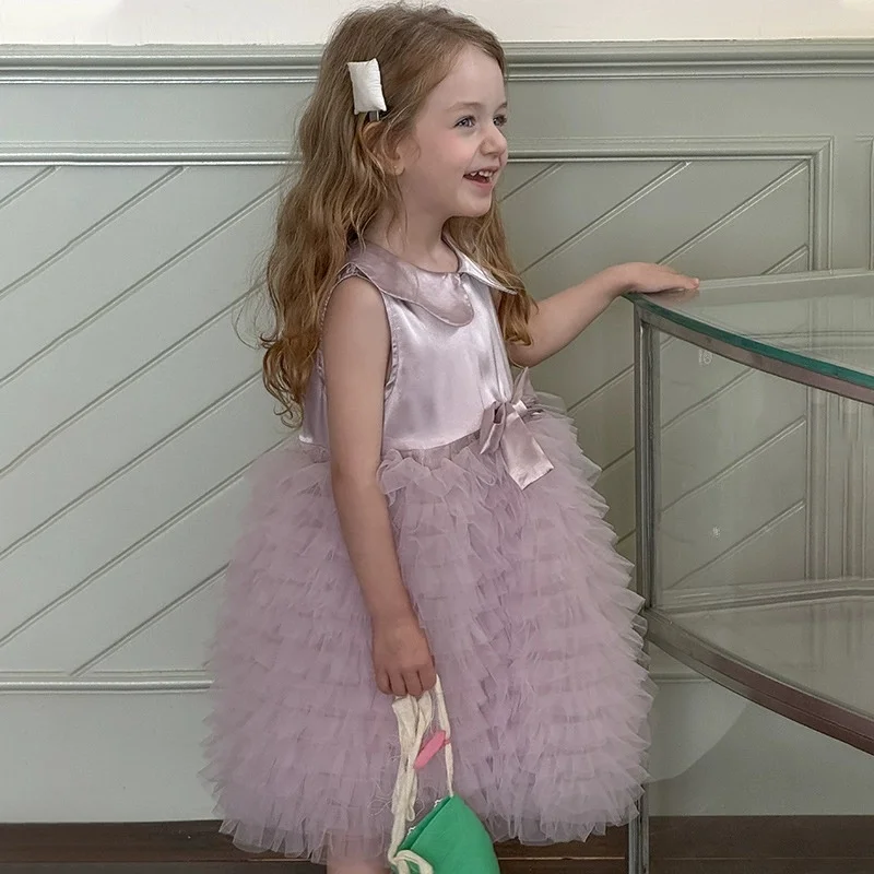 ODM Elegant Summer Girls Party Dress with Cute Doll Collar Fluffy Kids Princess Dresses for Children Birthday