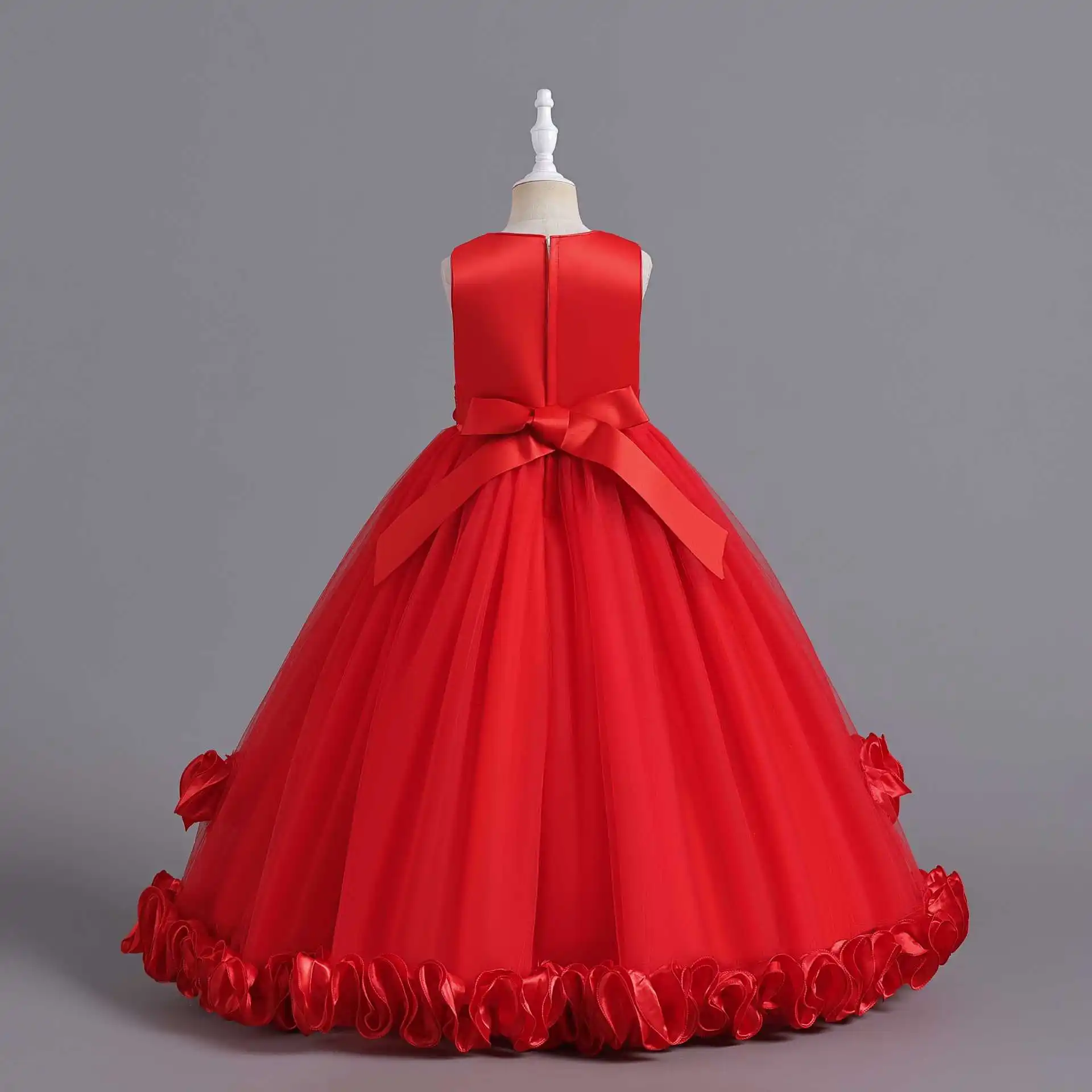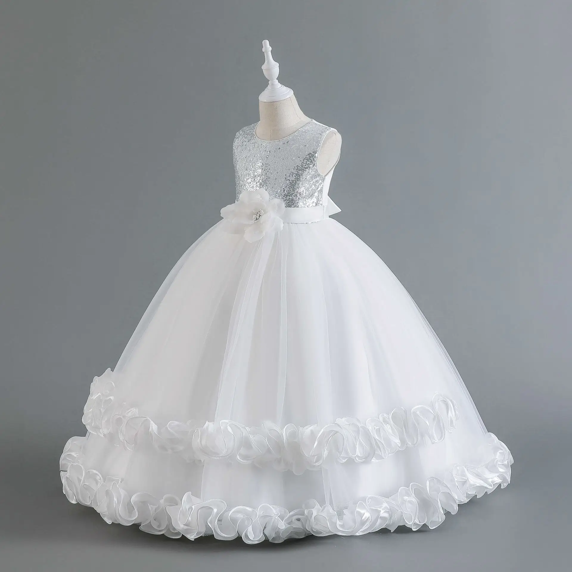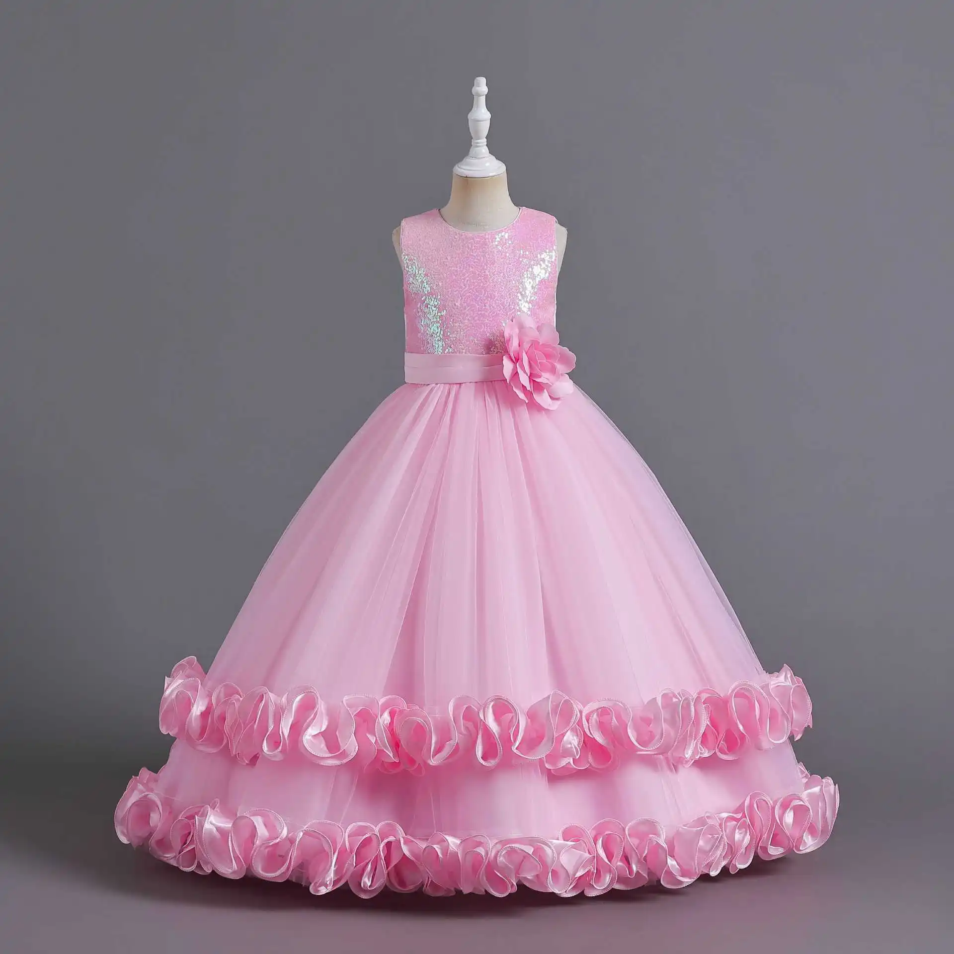 4-11 Years Sleeveless Princess Flowers Ball Evening Gown Sequin Fabric Layered Christmas Long Girl Princess Dress