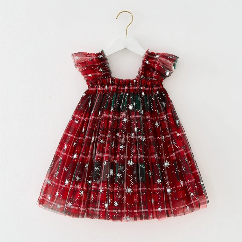 New Arrival Sleeveless Sequined Baby Girl Christmas Dress Kids Party Fancy Tutu Tulle Dresses