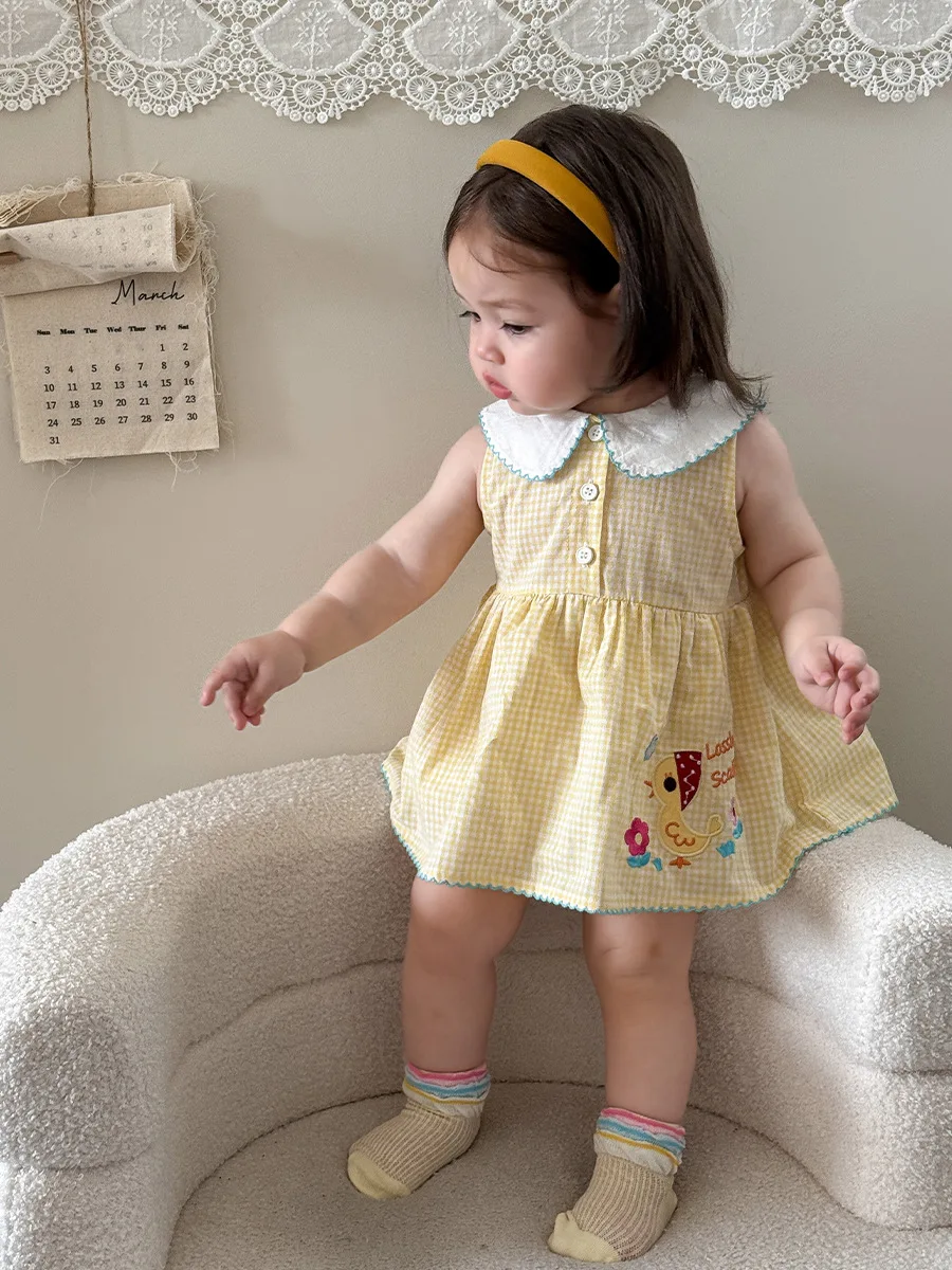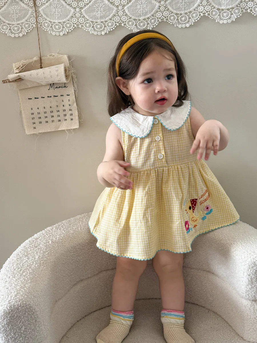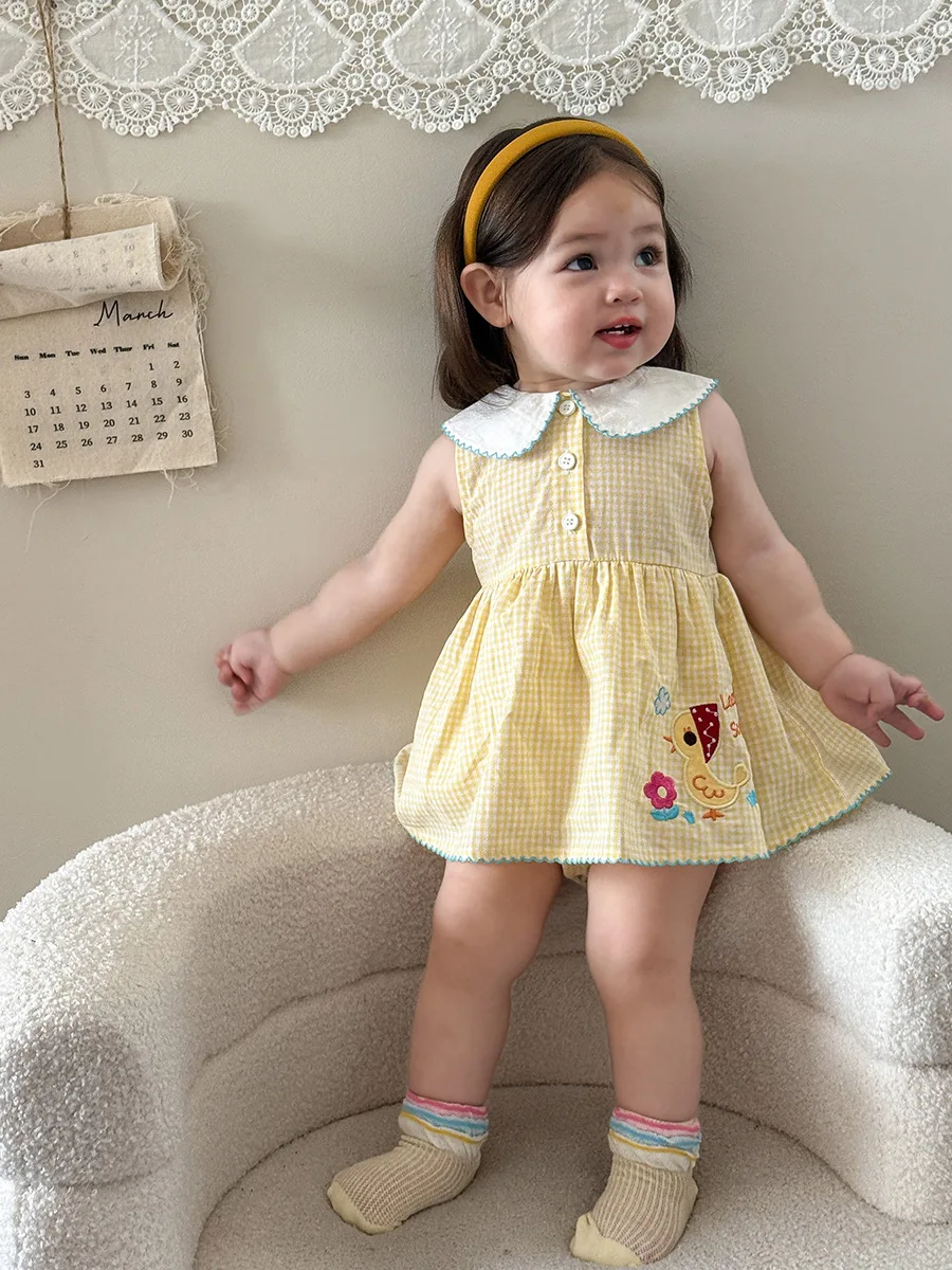 Cute Summer Cotton Sleeveless Newborn Jumpsuit Infant Girl Romper Dress Embroidered Animal Pattern New Baby Clothing