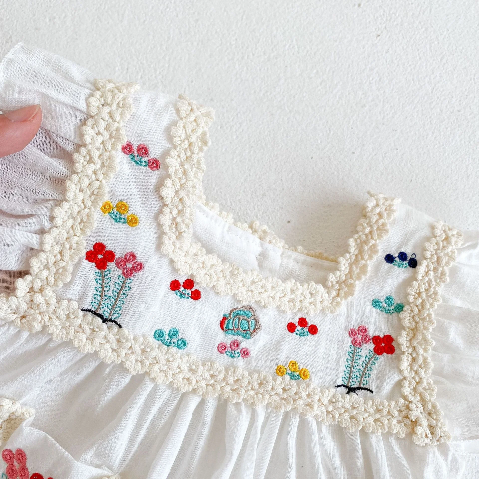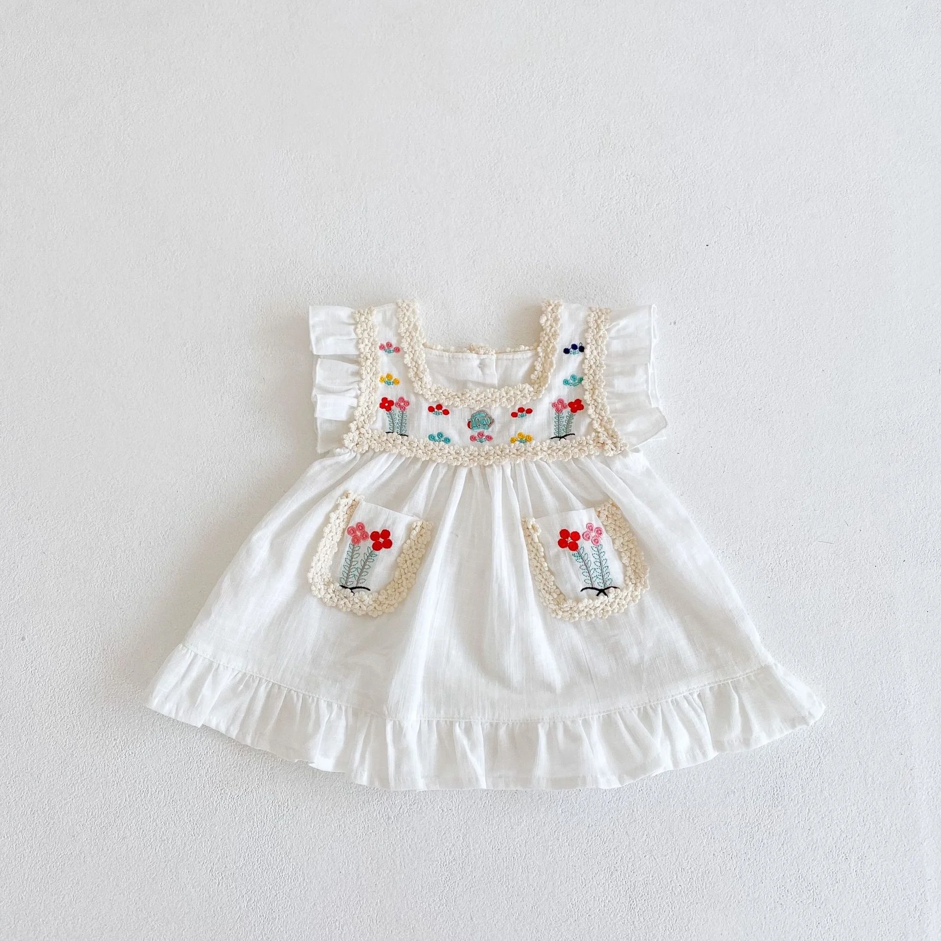 Summer Infant Girls Casual Dress Newborn Embroidered Floral Cotton 0-3 Years O-Neck 3D Pattern for Baby's Comfort