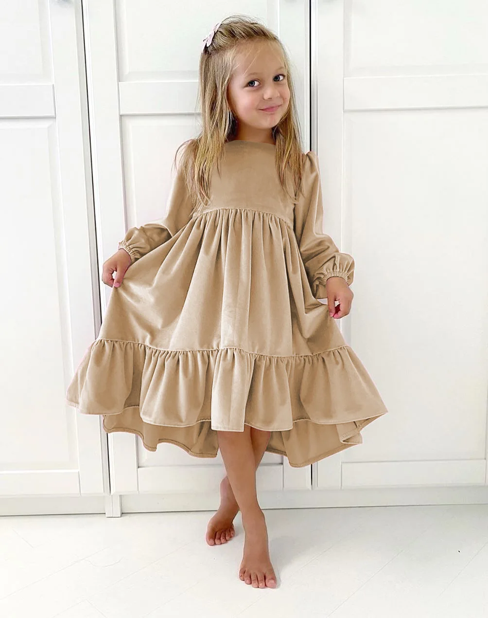 Custom Long-Sleeved Princess Skirt for Girls Autumn Boutique Ruffled Dresses with Animal Pattern ODM Supply