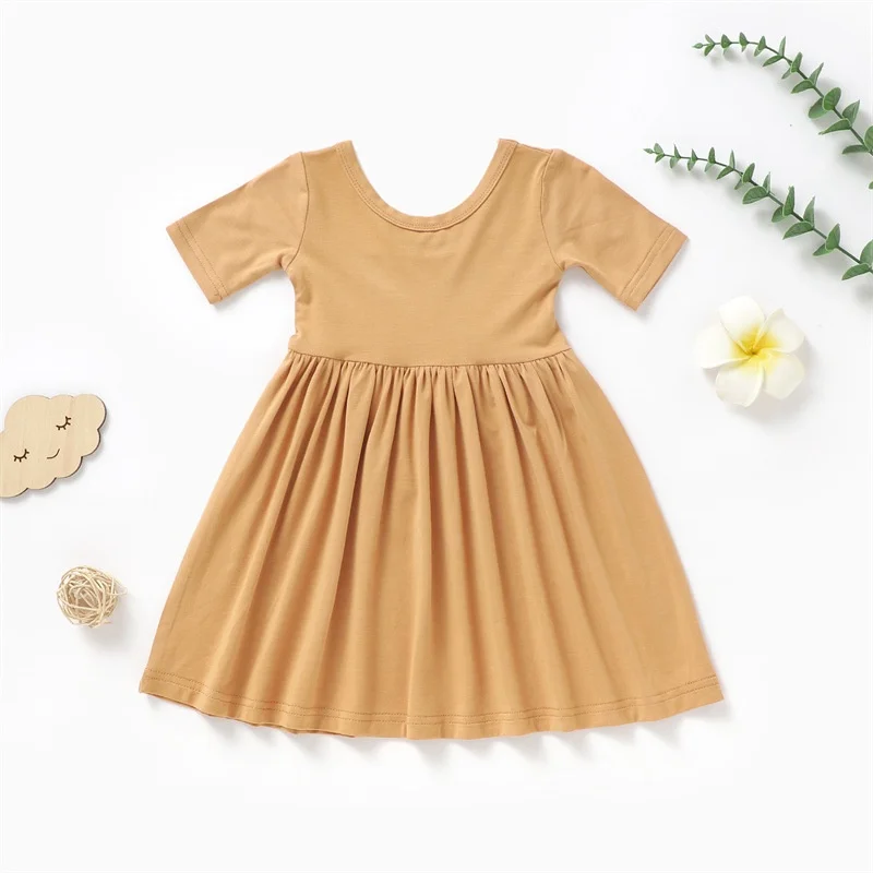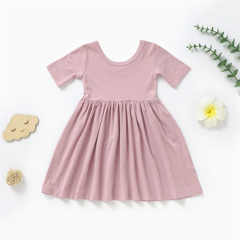 Newborn Little Girl Casual Princess Dress Soft Breathable Bamboo A-Line Knee-Length Kid Girls Birthday Dresses