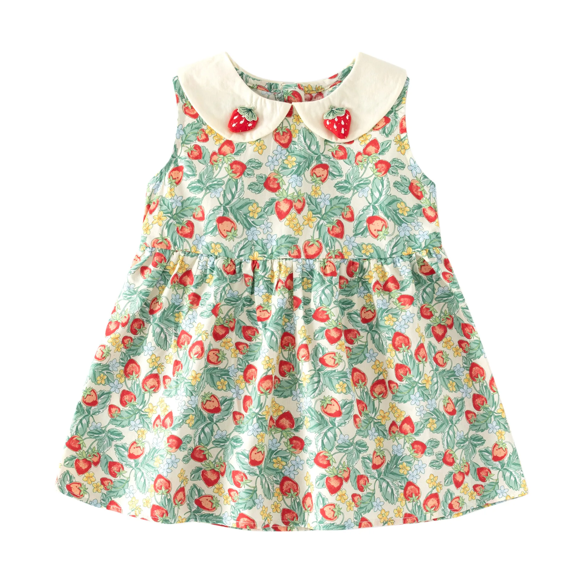 Children's Cotton Linen Cute Frilly Sleeve Embroidered Floral Short Sleeve Knee Length Dress Girls Kids Summer O-Neck Clothing