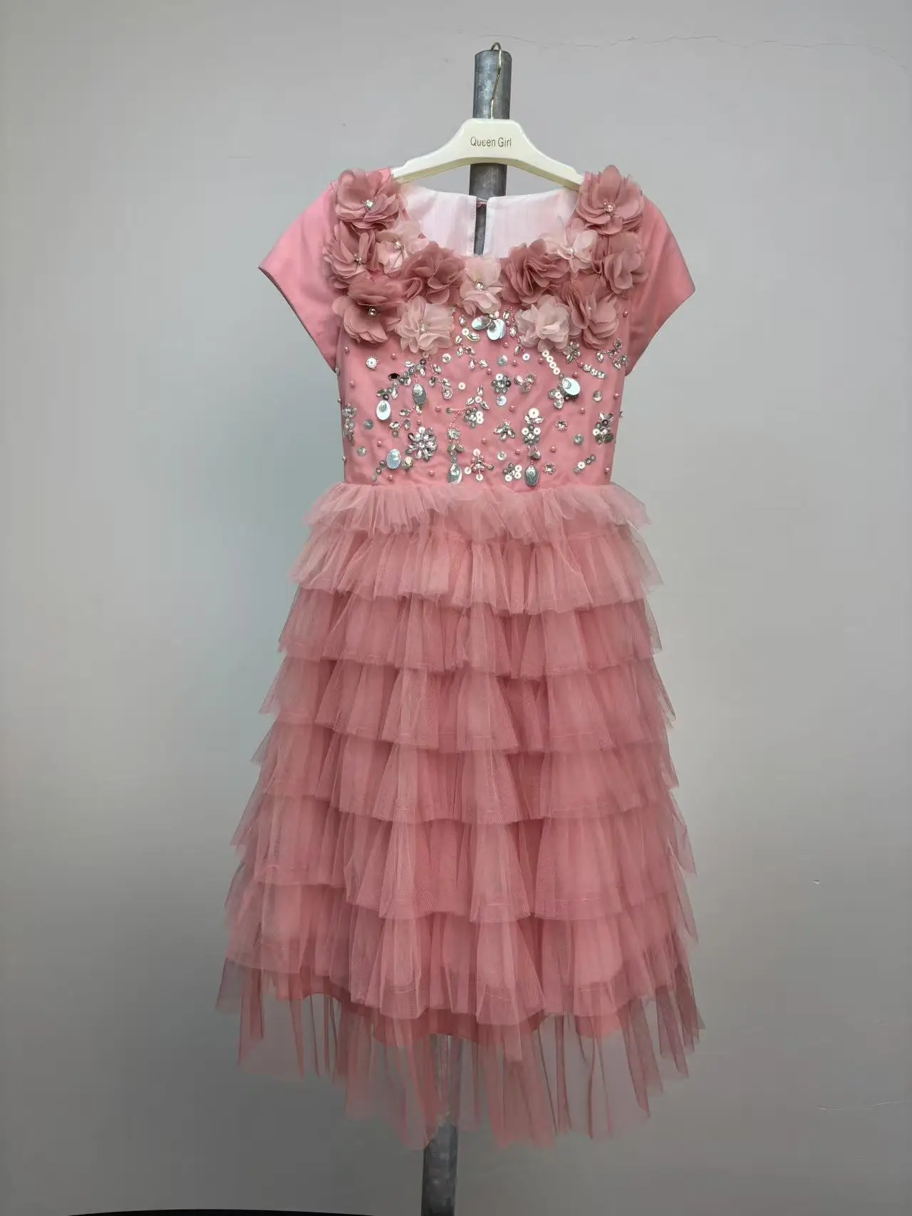 OEM Summer Casual Breathable 3D Floral Cake Dress for Kids Girls' American Style Floral Patterned Clothes Age Group Children