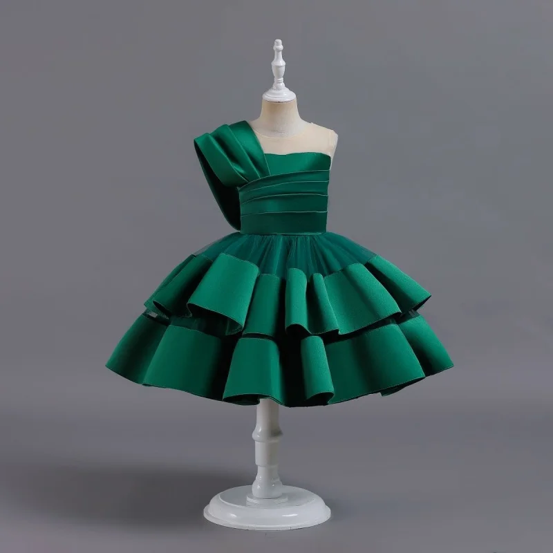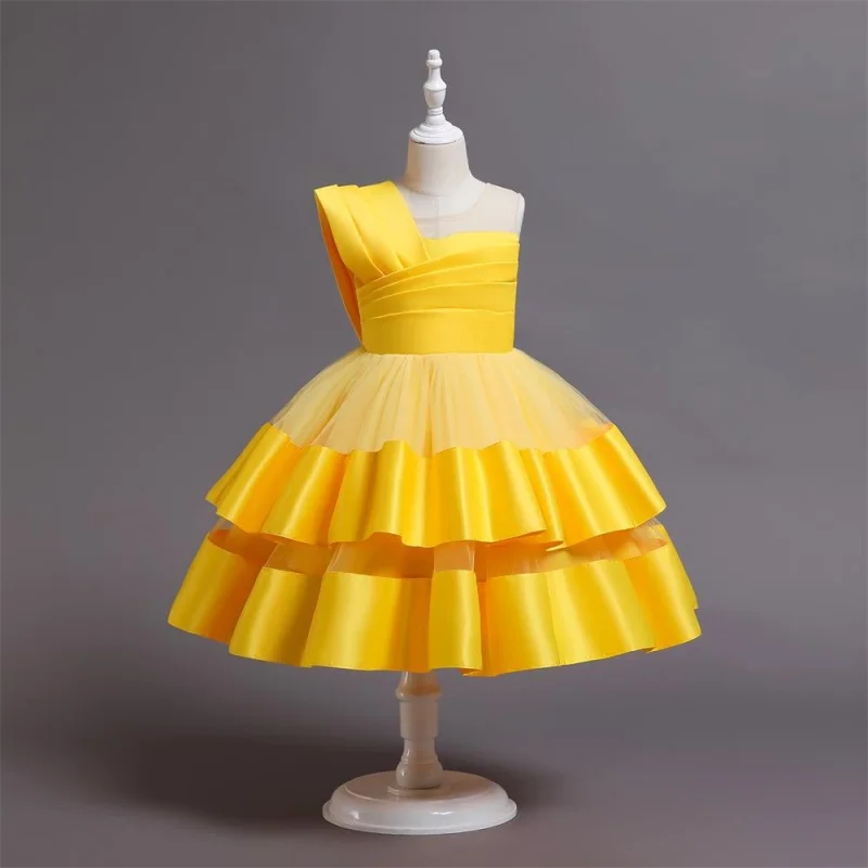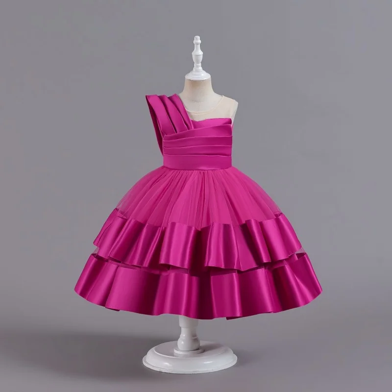 Candy Color Slanted Shoulder Satin Princess Dress for Girl Layering Elegant Dresses for Girls