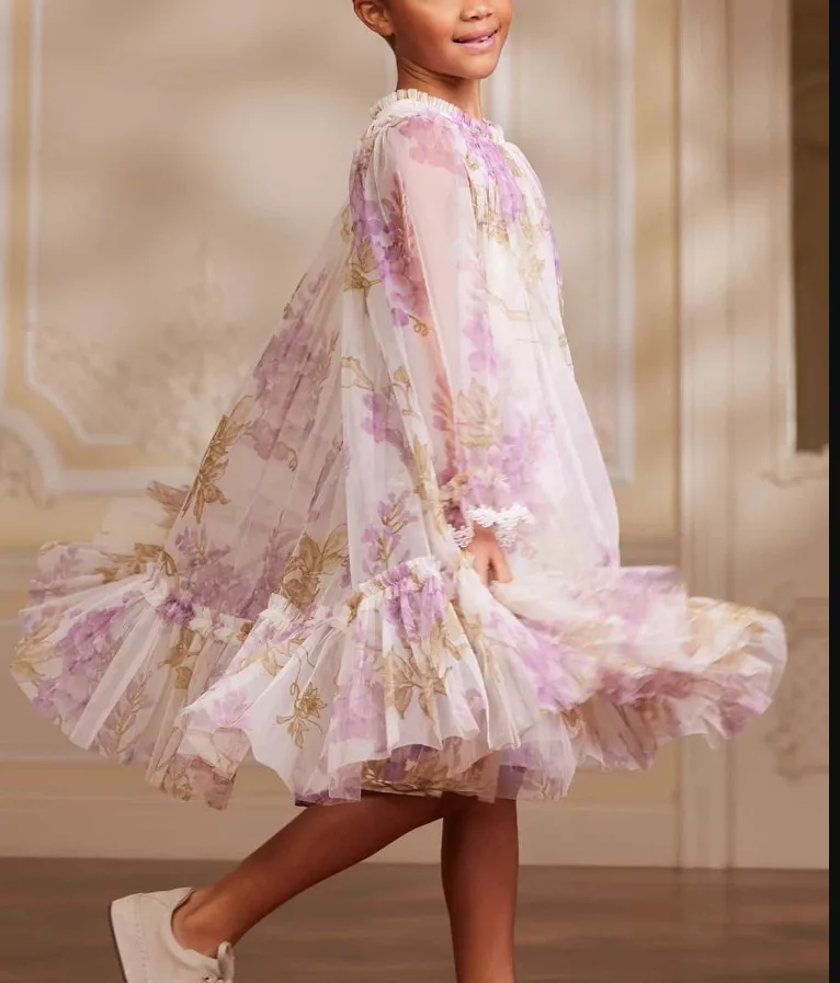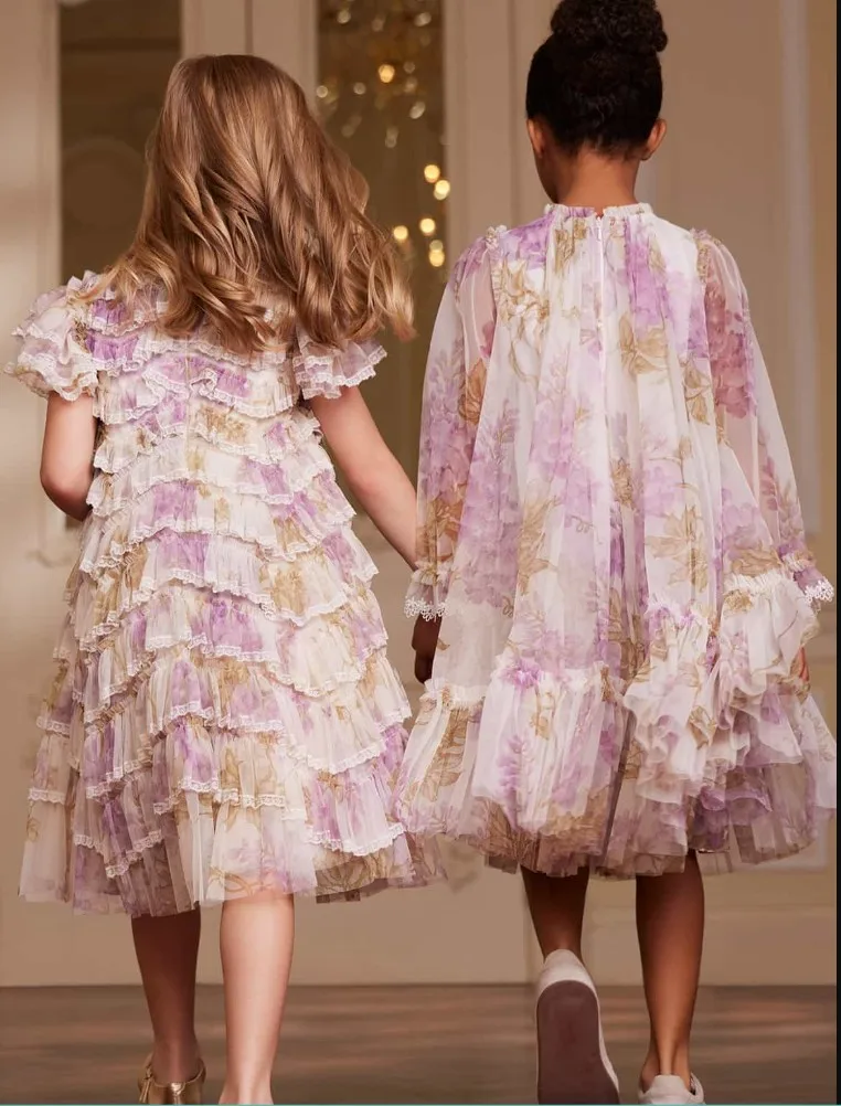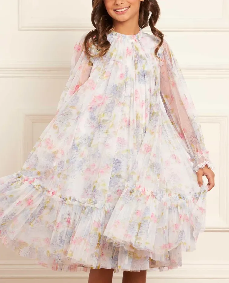 Wholesale Summer Casual Dresses for Girls O-Neck Floral Decoration for Children Aged 12 Years and Above