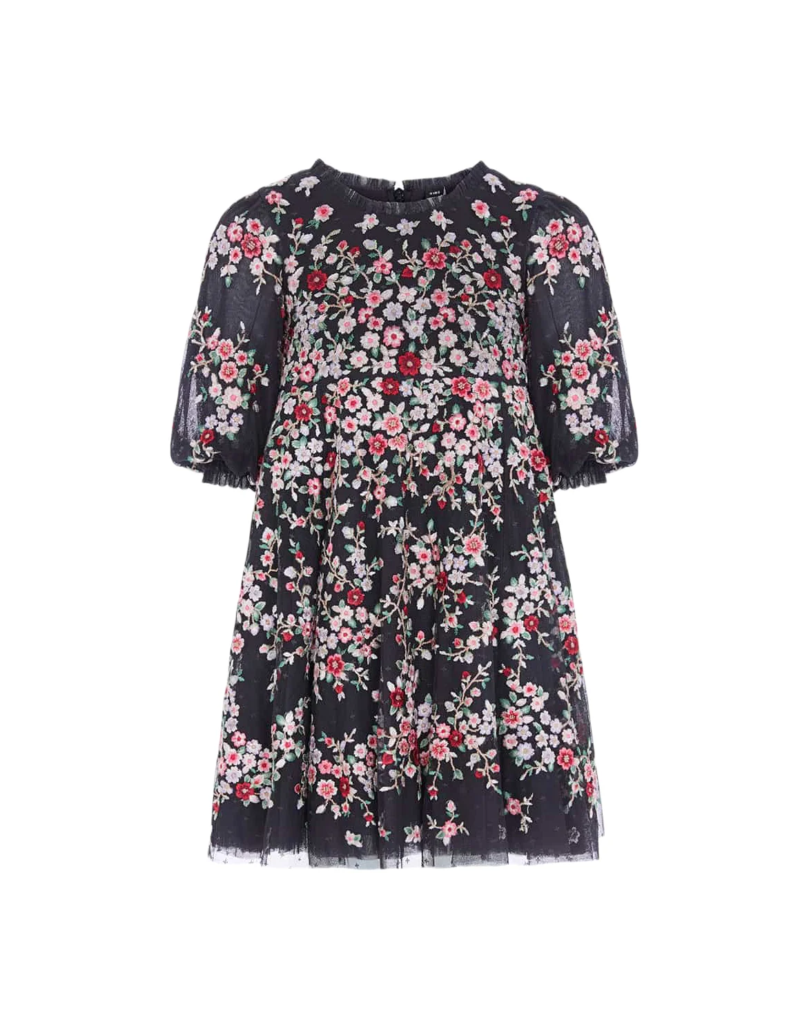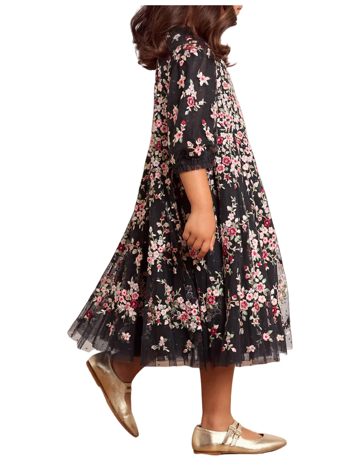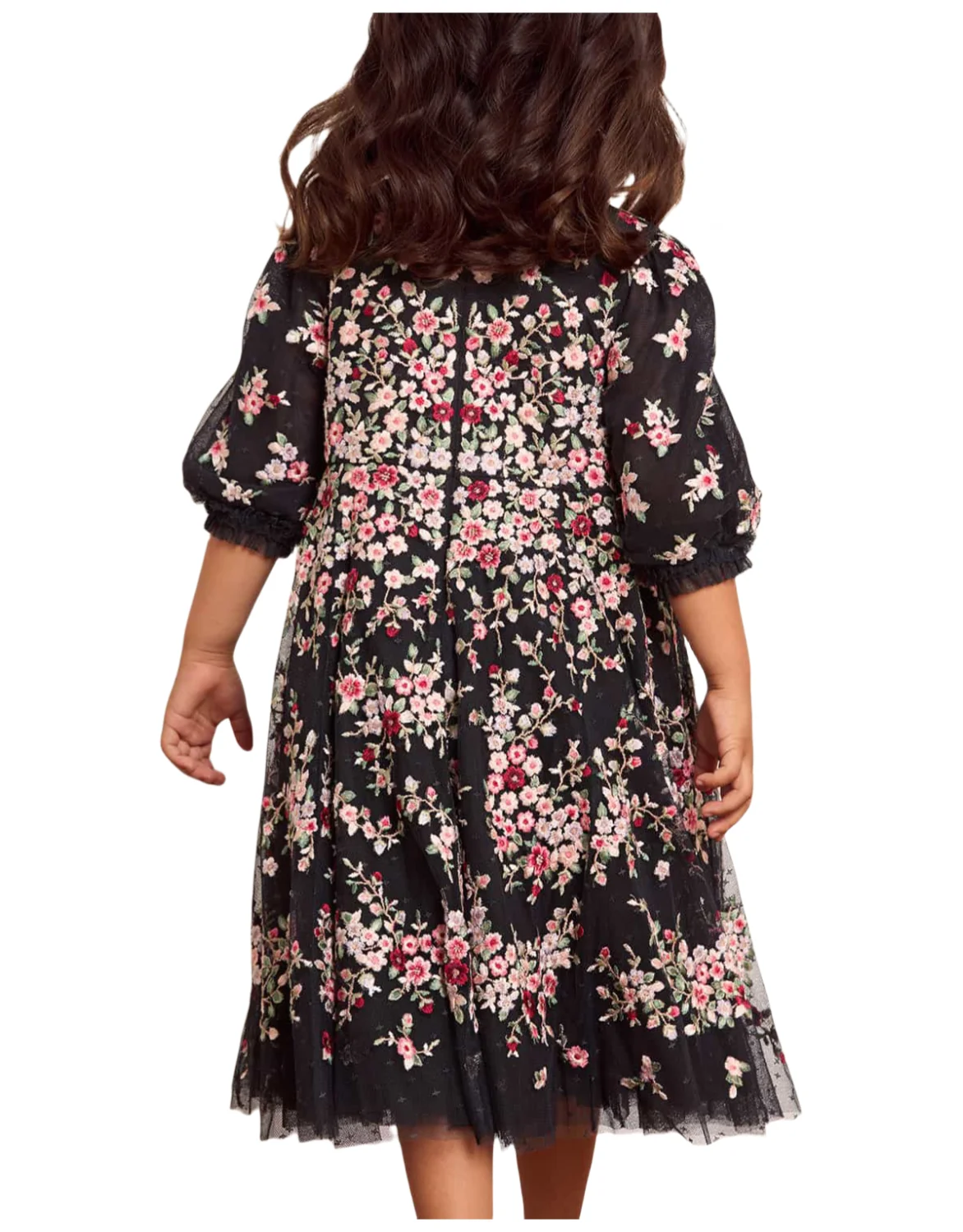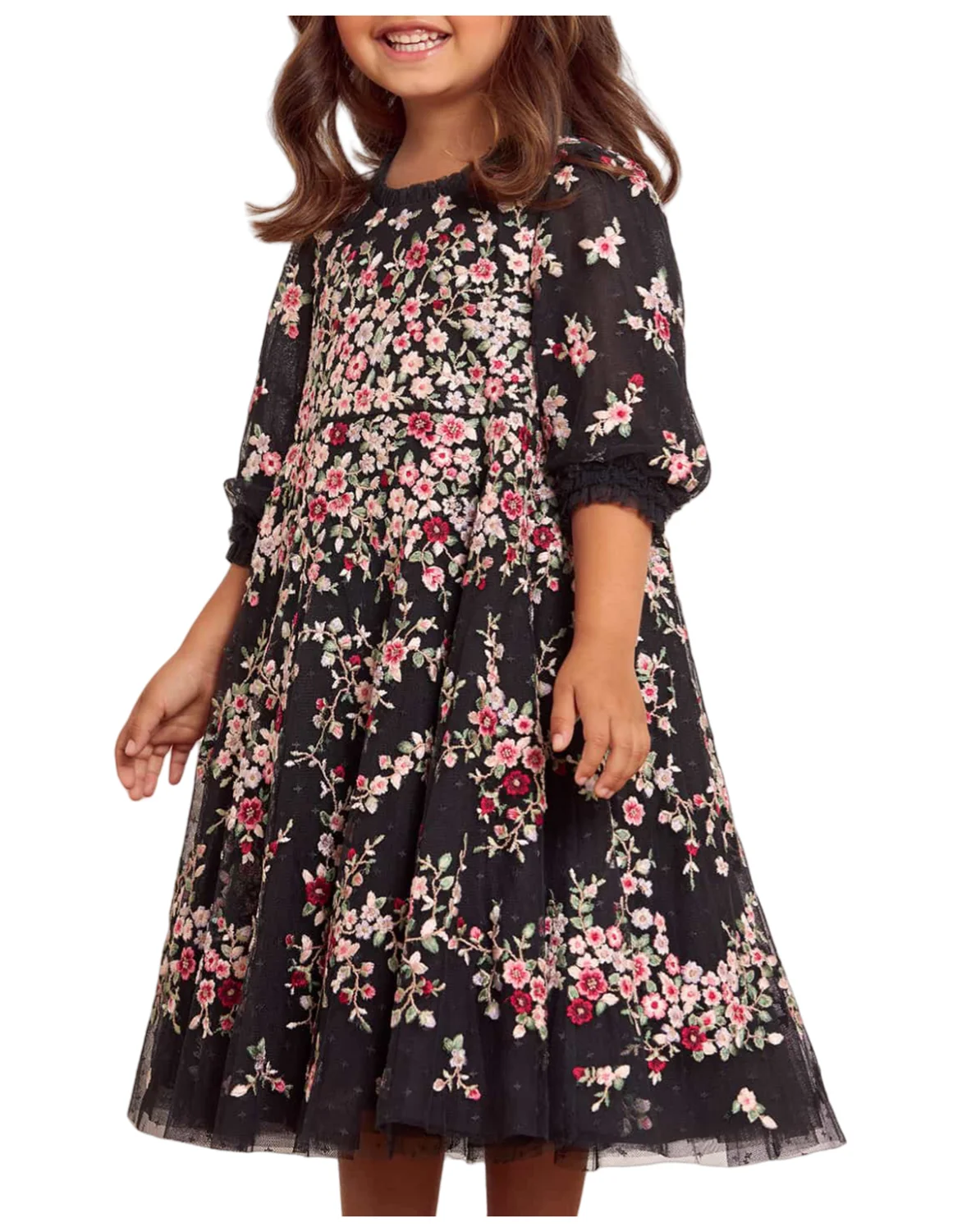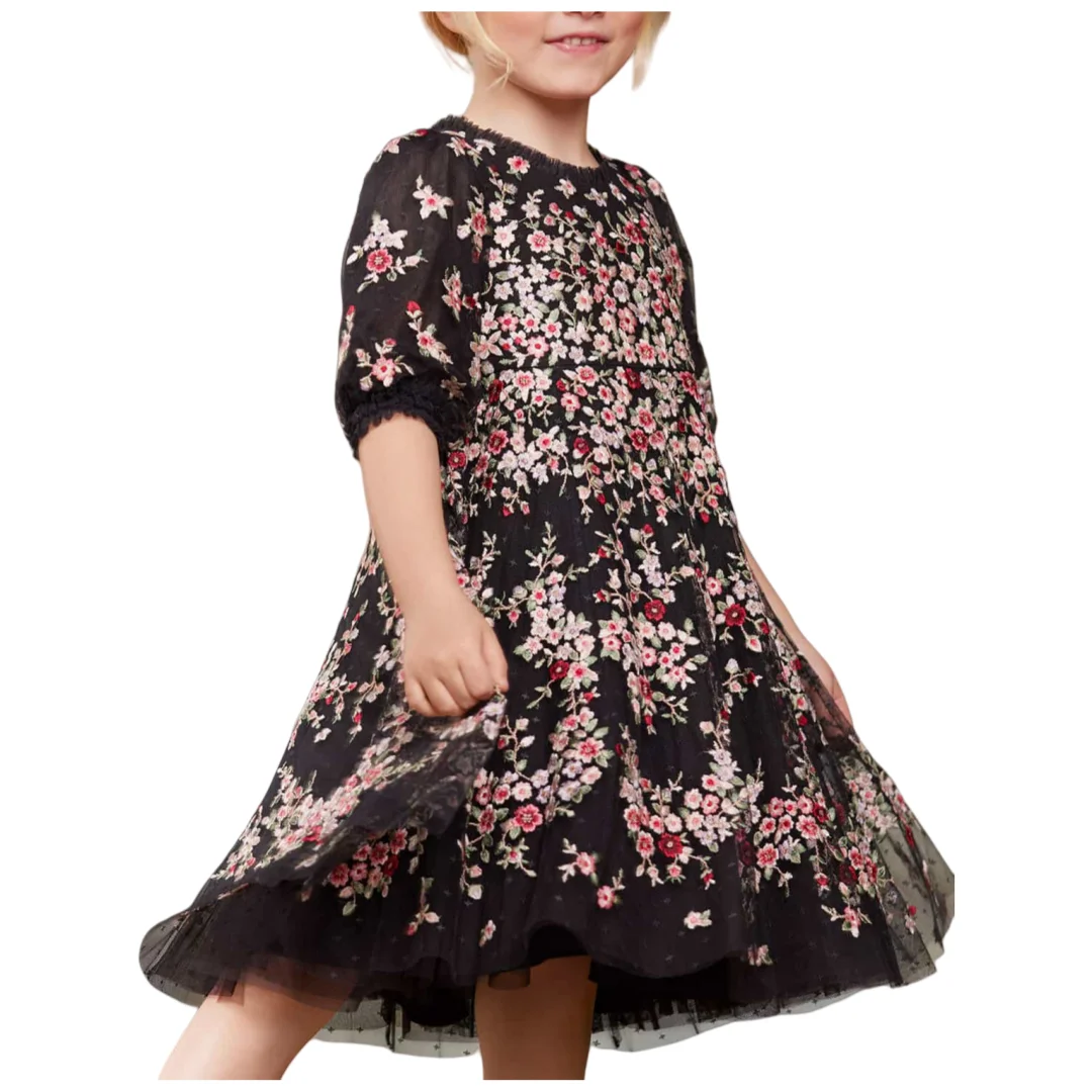 Children's Floral Embroidered Knee Length Casual Dress Sweet Girls Delicate Tulle Half Sleeved Daily Dress