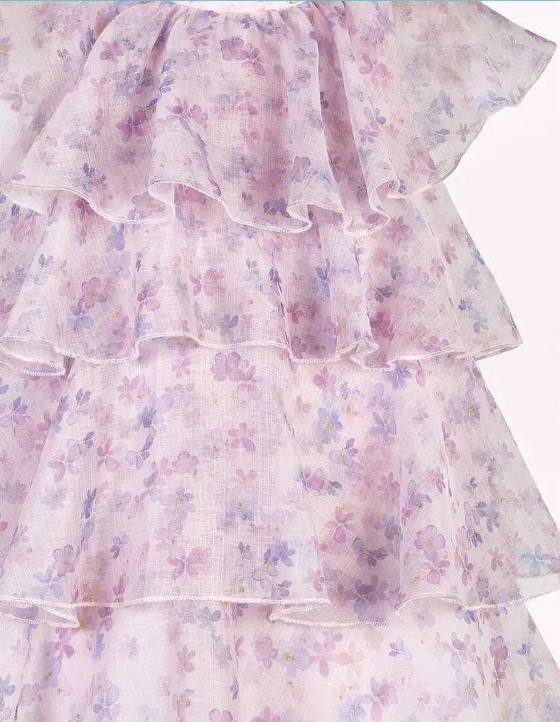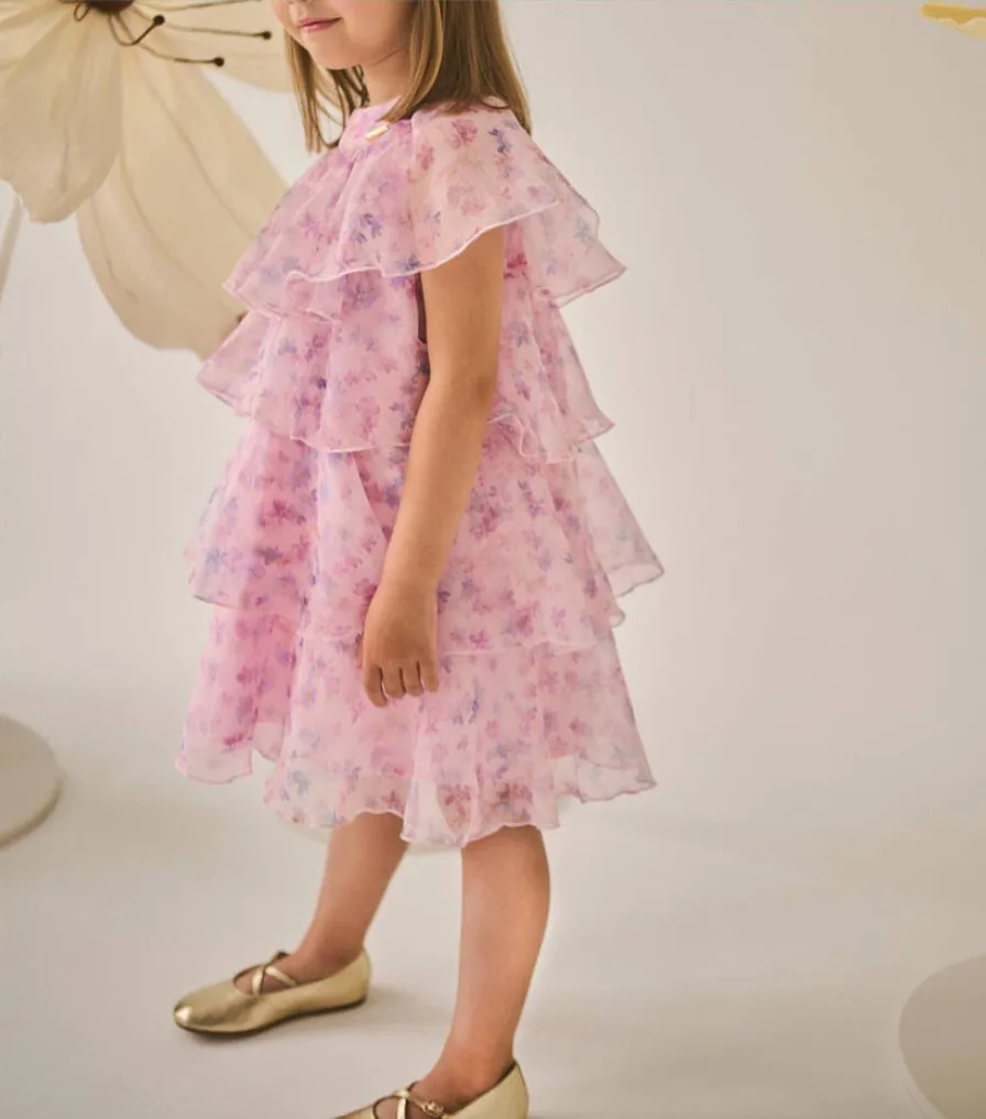 Lovely Children's Floral Print Evening Dress Girls Short Sleeves Knee Length Multi - Ruffled Gown