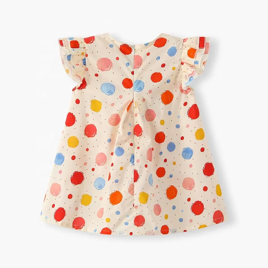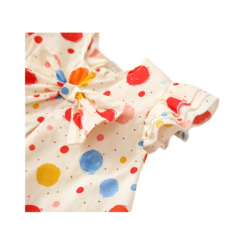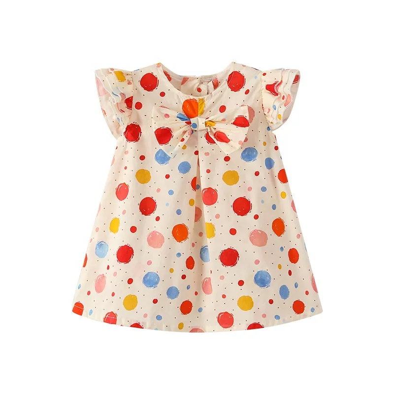 Children's Cotton Colorful Polka Dots Short Sleeve Bow Decorated Dress Infant Girls O - Neck Knee Length Apparel