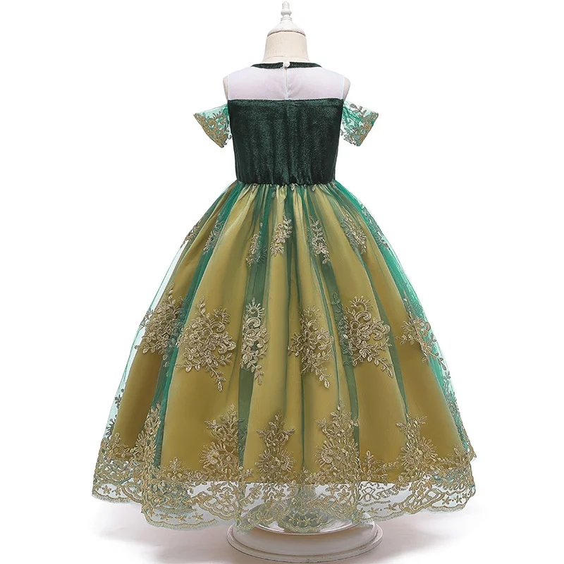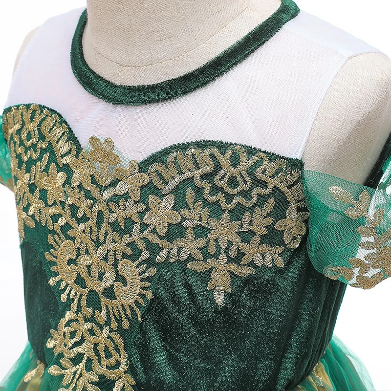 Frozen Anna Princess Ball Gown Dress for Girls Exquisitely Embroidered Golden Flowers Formal Greenish-Yellow Fluffy Formal Dress