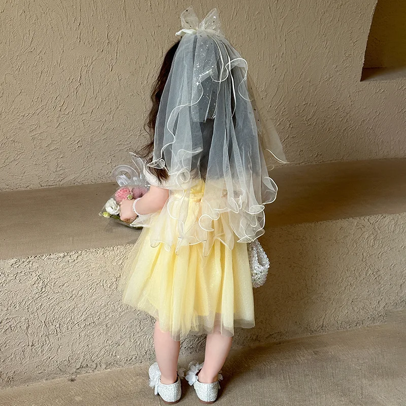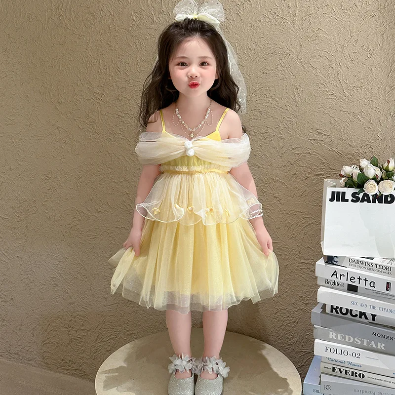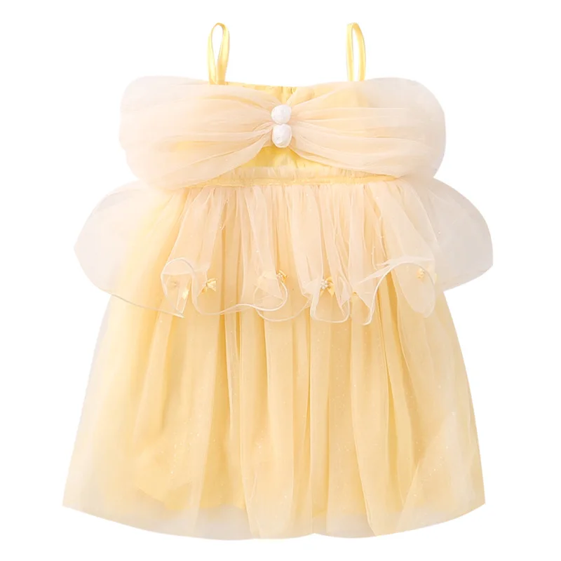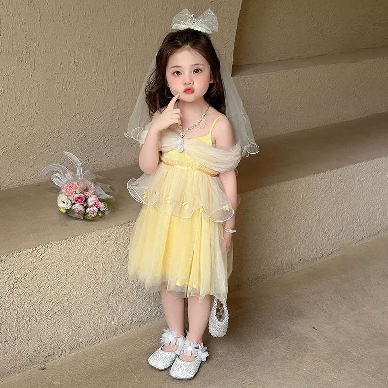 Belle Princess Yellow Princess Pattern Ball Gowns for Kids Girls Birthday Party Clothes Flower Applique Pageant Dresses